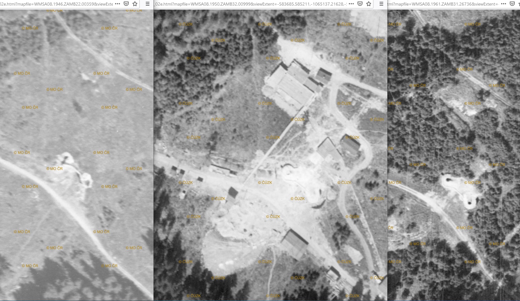 psiki píše:Zdravím a chtěl bych Vás upozornit že jsou uvolněné letecké snímky z roku 1950 a nemálo z Vás může zaujmout množství staveb co vyrostlo kolem vchoďáku na Boudě při renovaci (betonáži) KS-22a.