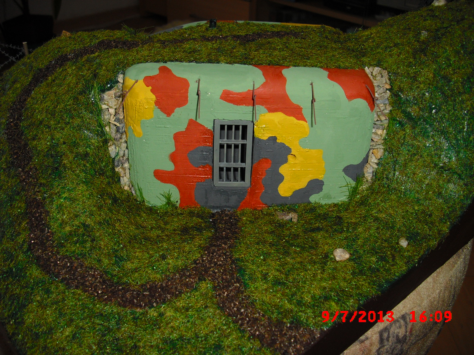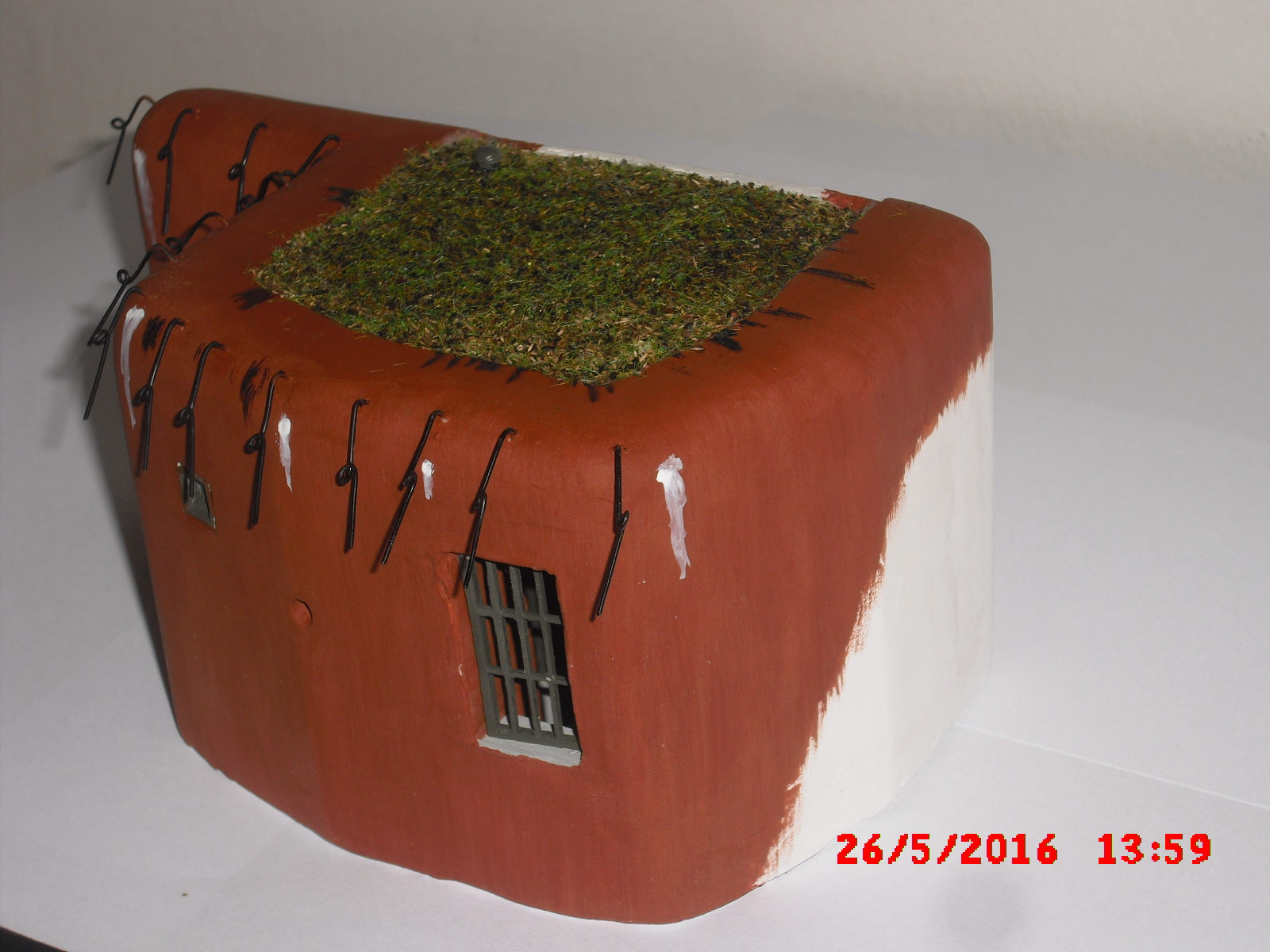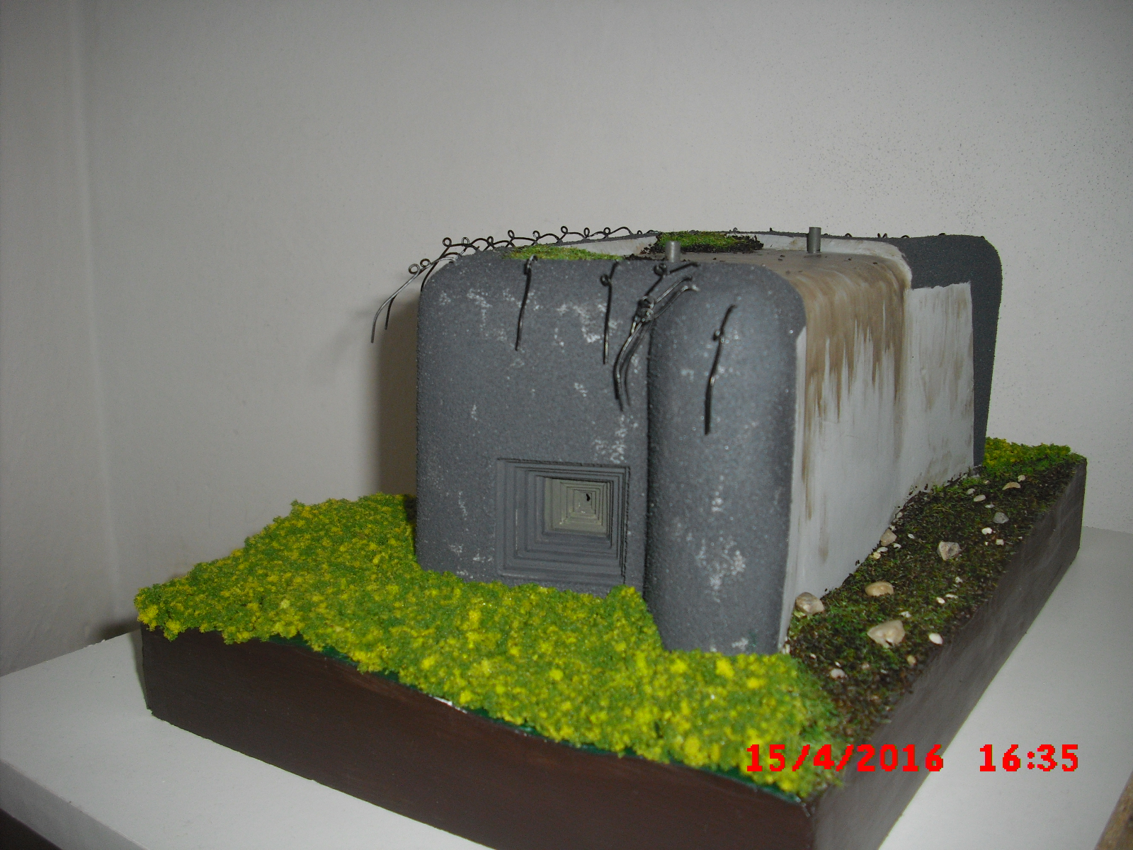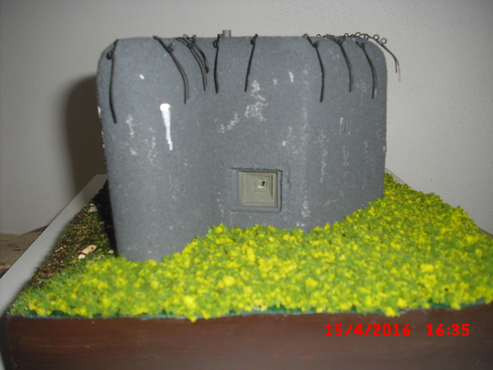 Začal jsem s modelařením čs. opevnění. Hodně zde na fóru čtu vaše příspěvky a kochám se dokonalými modely. Zvláštní obdiv patří těm co tvoří modely z nestavebnic. Uveřejňuji zde fota mého prvního modelu. Je to LO vz.1937, typ A-160 N. Model je kopií objektu č. 16, stavebního úseku C-10, I. sboru. Objekt je situován v Roudnici nad Labem a je zrekonstruován jako muzeum. Model je vyhotoven z polystyrenu. Povrch jsem vytvořil z lepidla na obklady, omítka je z jemného křemičitého písku. Střílny jsou lepeny z polystyrenových L profilů, stejně tak mřížové dveře. Terénní úpravy jsou vyhotoveny z PUR pěny a tmeleno lepidlem na obklady. Povrch zasypán travním posypem pro železniční modeláře. Podotýkám, že je to můj první model, tak buďte při kritice shovívaví. Díky.