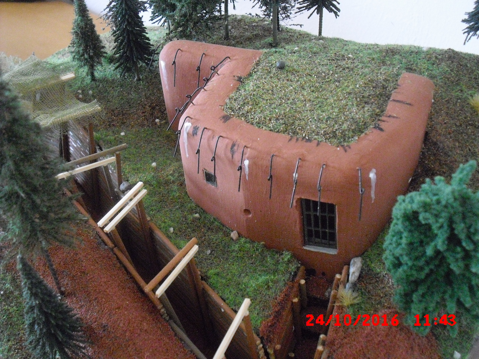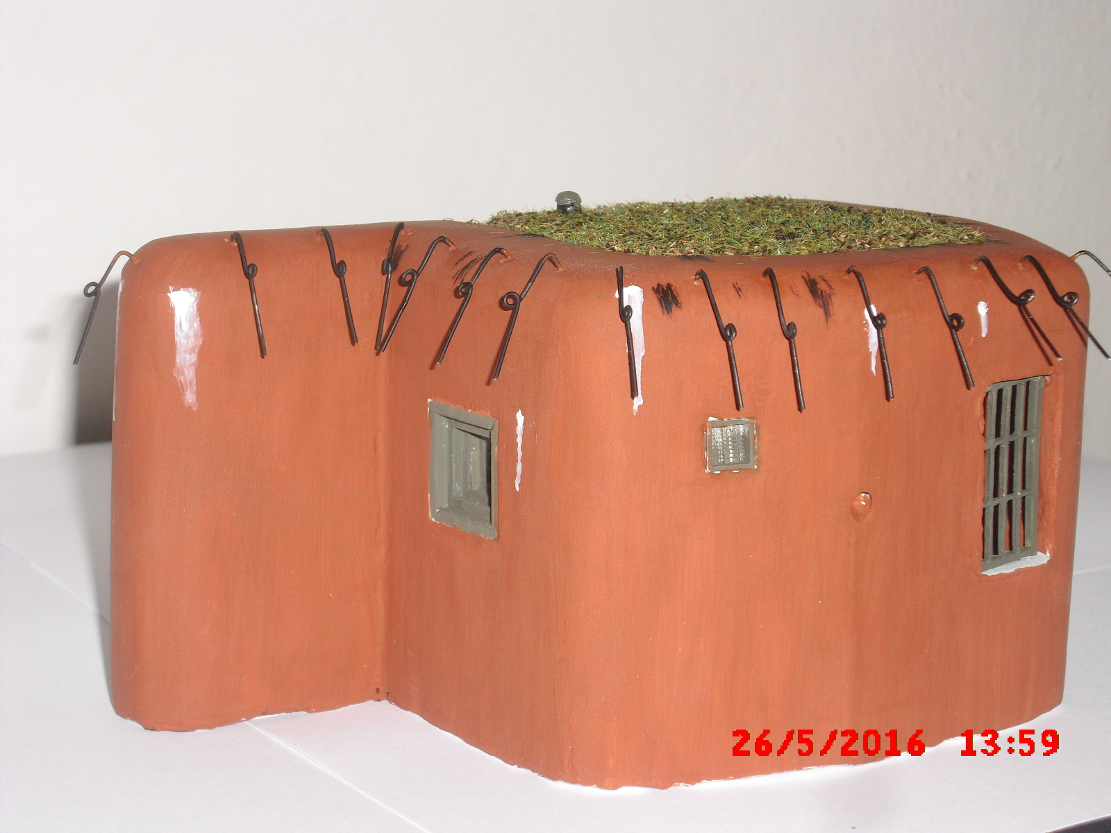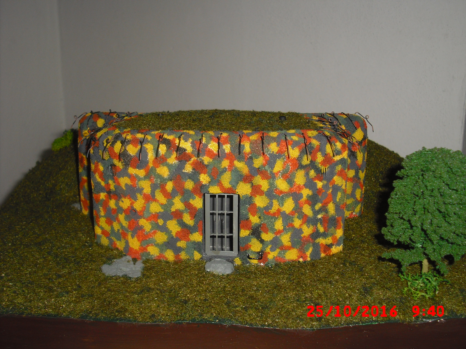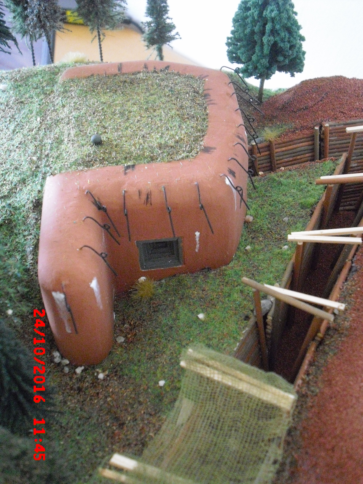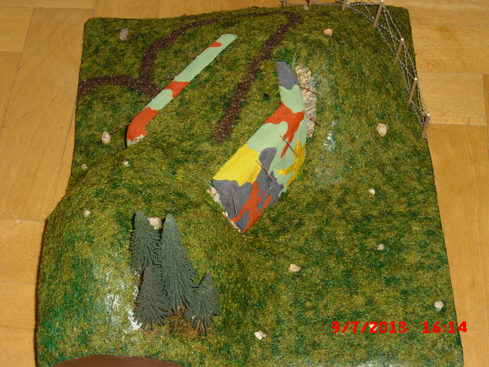 Začal jsem s modelařením čs. opevnění. Hodně zde na fóru čtu vaše příspěvky a kochám se dokonalými modely. Zvláštní obdiv patří těm co tvoří modely z nestavebnic. Uveřejňuji zde fota mého prvního modelu. Je to LO vz.1937, typ A-160 N. Model je kopií objektu č. 16, stavebního úseku C-10, I. sboru. Objekt je situován v Roudnici nad Labem a je zrekonstruován jako muzeum. Model je vyhotoven z polystyrenu. Povrch jsem vytvořil z lepidla na obklady, omítka je z jemného křemičitého písku. Střílny jsou lepeny z polystyrenových L profilů, stejně tak mřížové dveře. Terénní úpravy jsou vyhotoveny z PUR pěny a tmeleno lepidlem na obklady. Povrch zasypán travním posypem pro železniční modeláře. Podotýkám, že je to můj první model, tak buďte při kritice shovívaví. Díky.