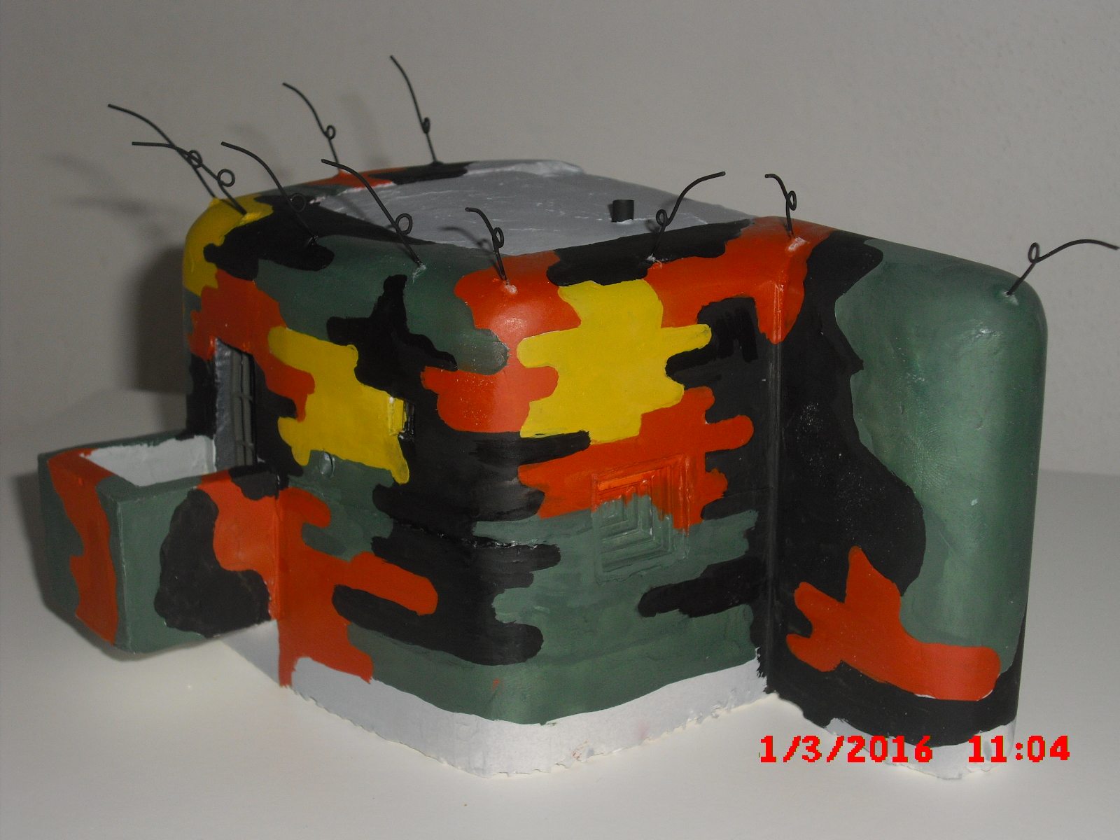 Zdravím všechny pevnostní modeláře. Po delší době se mi podařilo dokončit další objekt lehkého opevnění. Jde o dochovaný řopík II.armádního sboru, stavebního úseku F2, číslo 64, typ D2. Opět je to model v měřítku 1:35.