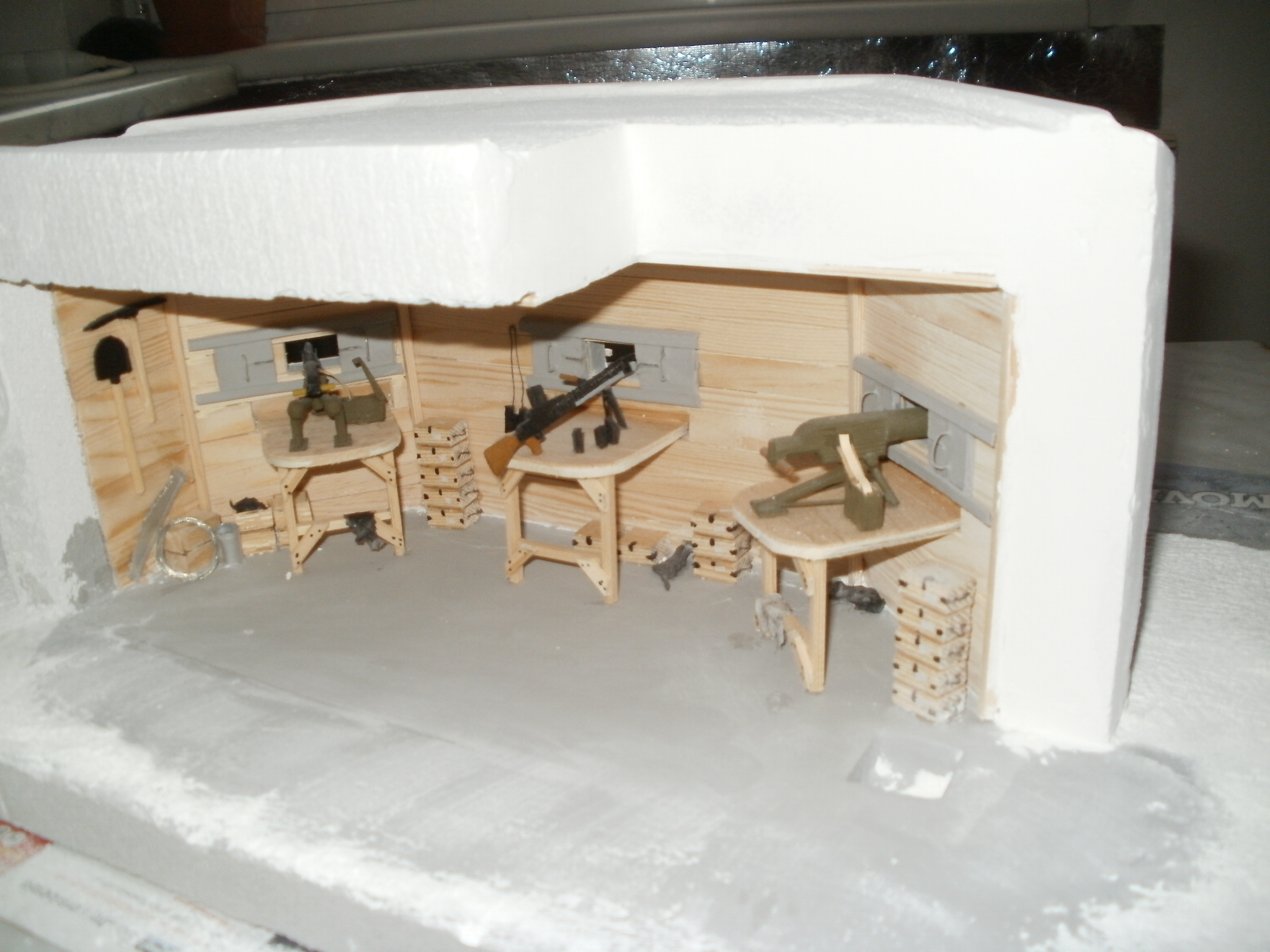 posílám pár obrázků ze stavby modelu vz. 36 C. V modelu jsou 3 typy kulometů, což by v reálu asi nebylo. Model slouží spíše k tomu, aby se u něj nechalo výprávět, ukazovat a vysvětlovat. Pokud si to chcete někdo vyzkoušet, připravte si přibližně 1 500 korun na materiál a zabere Vám to něco více jak 200 hodin práce. Vše je prvovýroba, jen tráva a stromy jsou kupované.