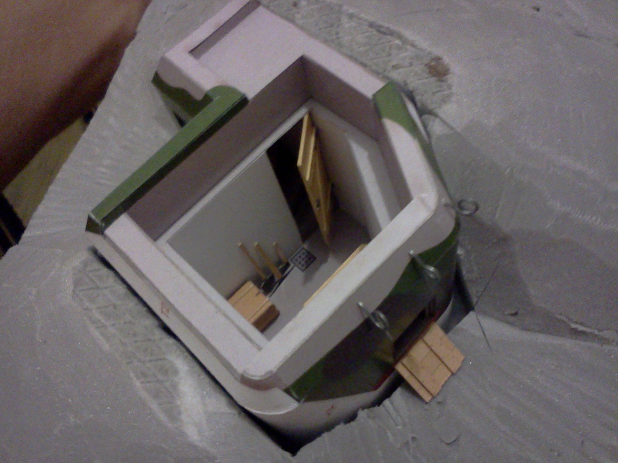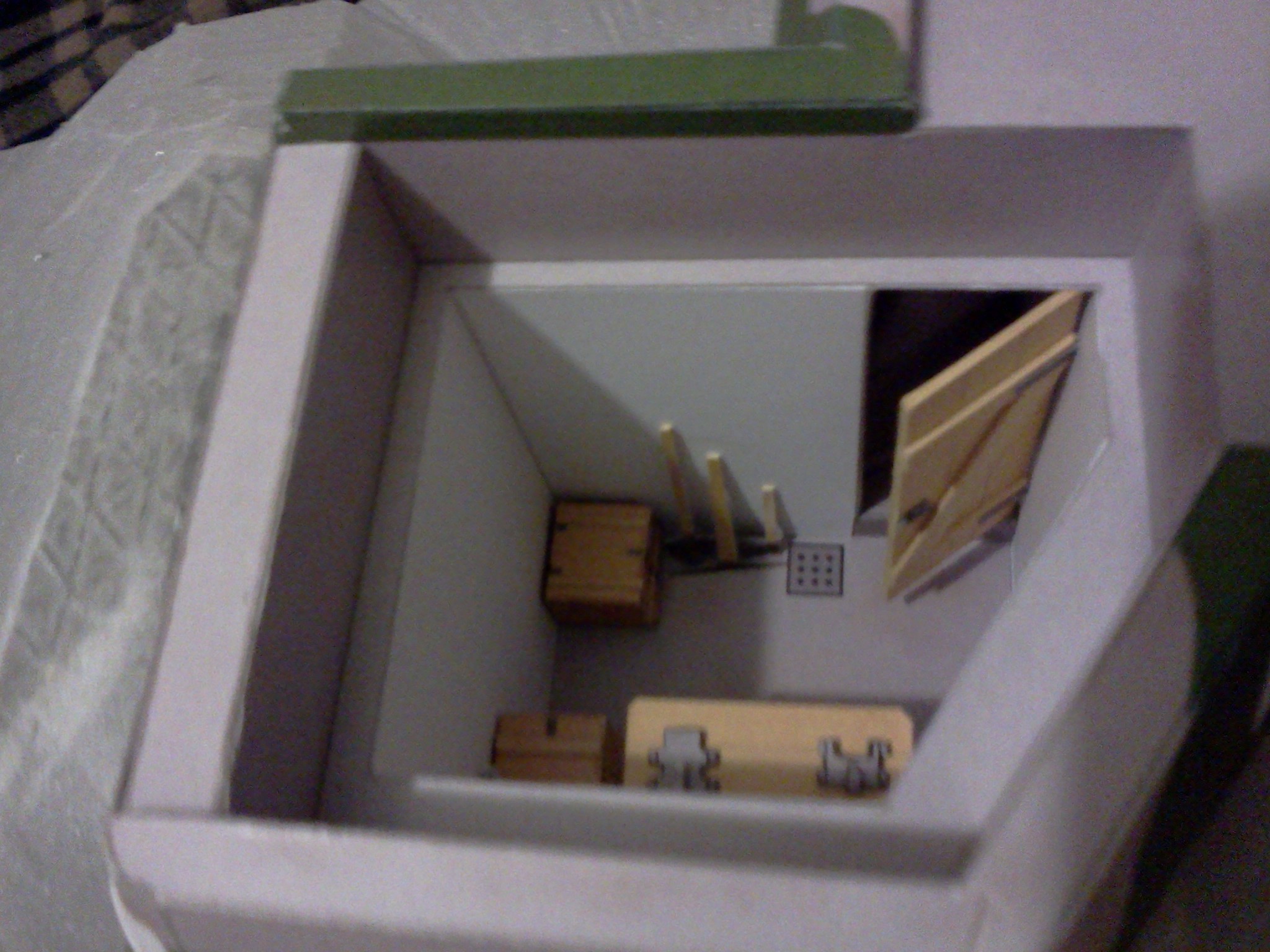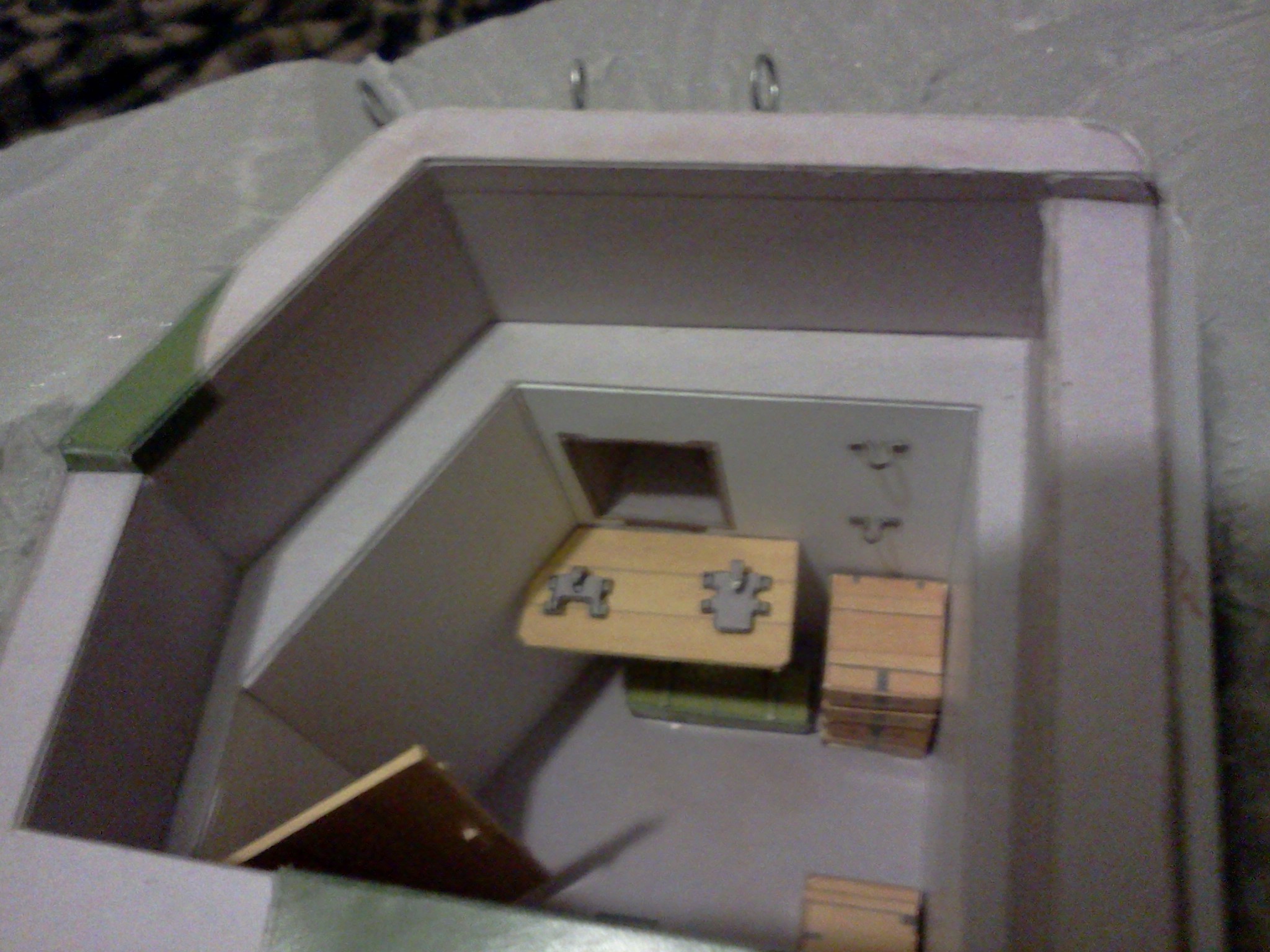 Téměř dokončený interiér pevnůstky. Chybí už jen LK a náhradní hlaveň.