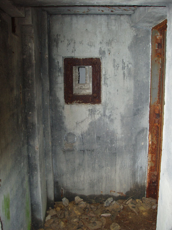 Vstup objektu R-S 54 jsem detailněji nezkoumal, ale dovolil bych si tvrdit, že na Vašich fotografiích je zachycen vyšisovaný šedý nátěr. Pro porovnání přikládám fotografii vstupu srubu S 59 z téhož podúseku, kde je původní tmavý nátěr dobře zřetelný. Porovnání s „odolnějším“ vápenným nátěrem je dobře znatelné na fotografii id 12141 v db, v interiérech na kartě S 59.