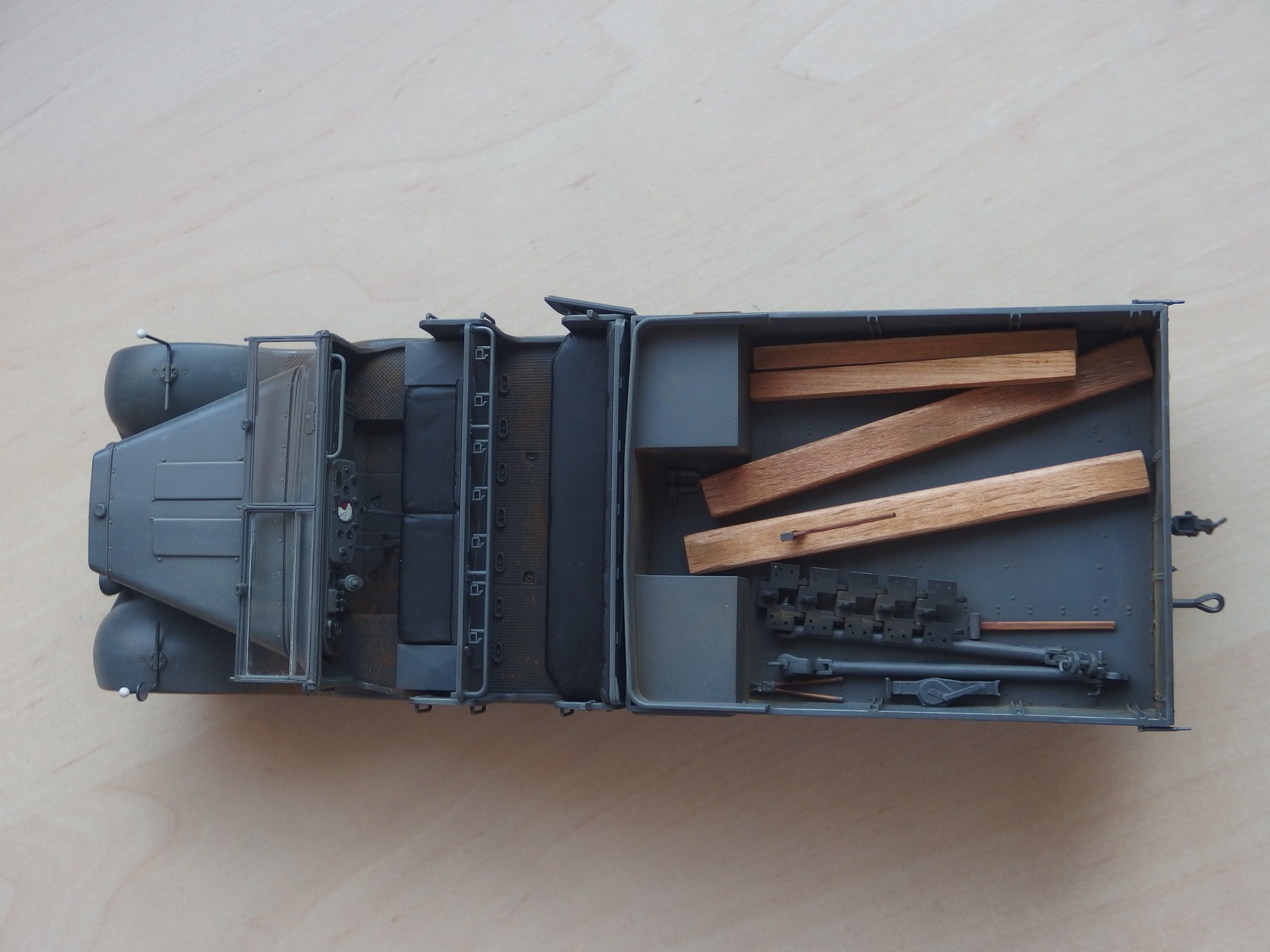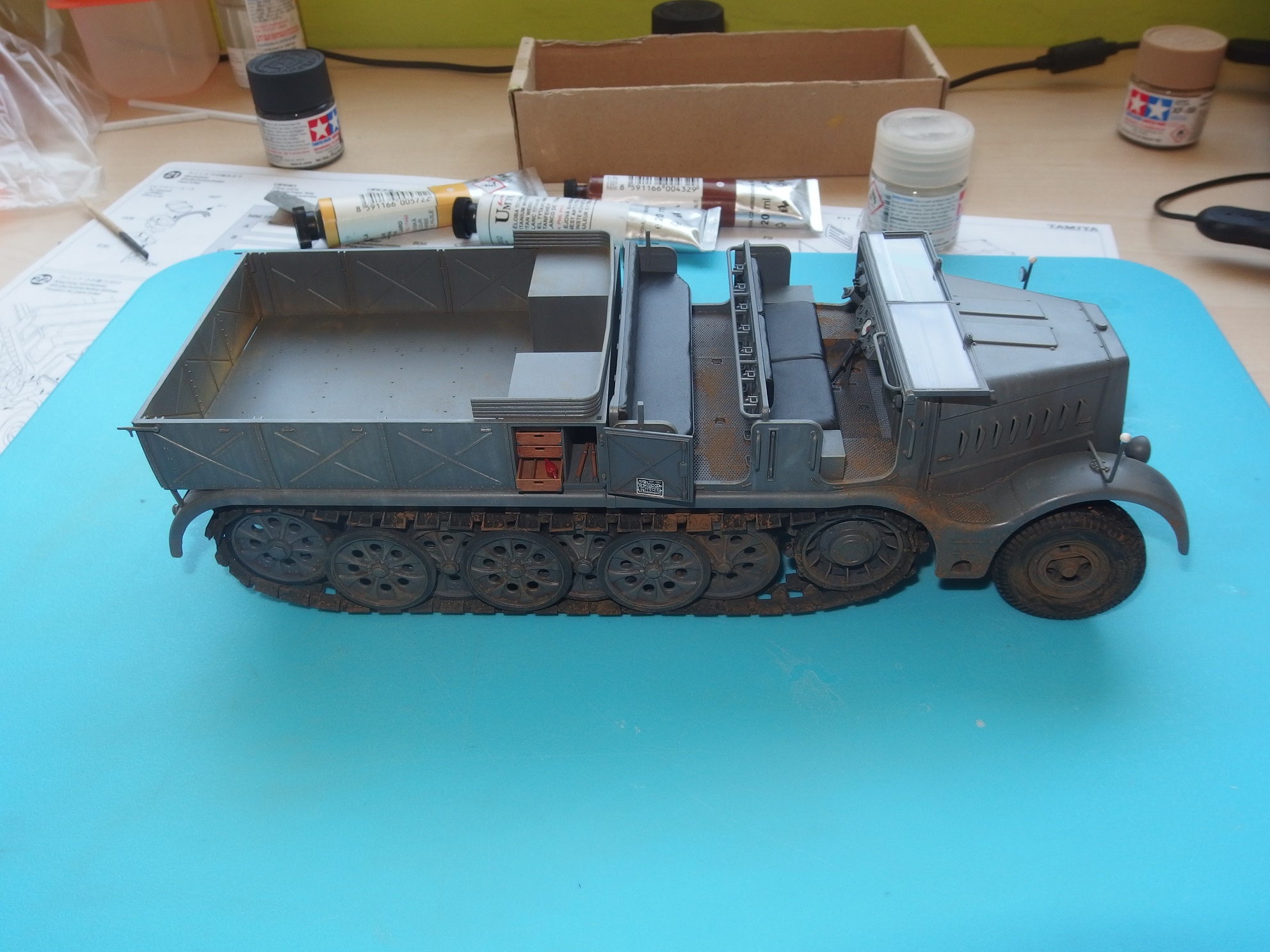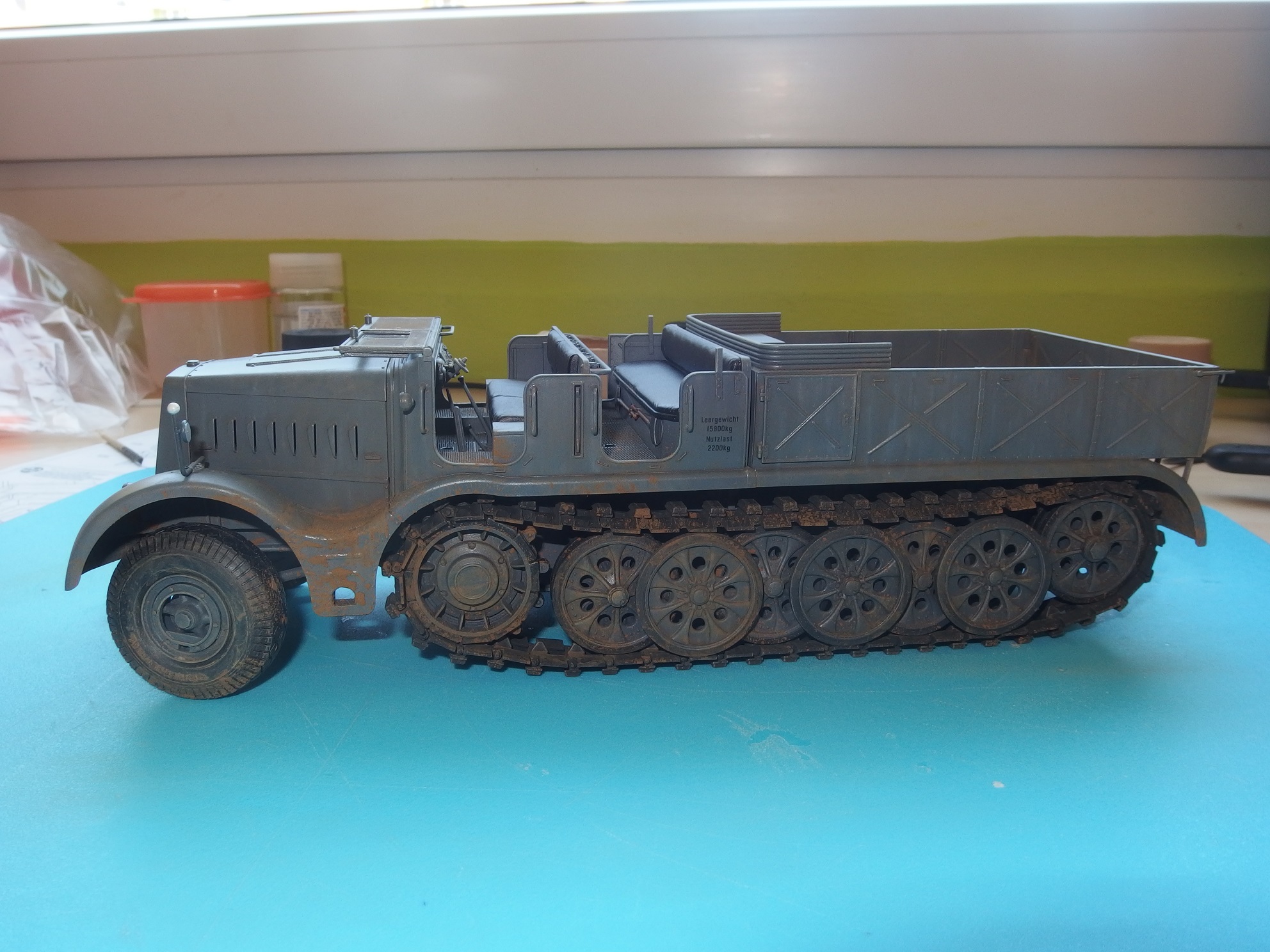 Využil jsem příležitosti, že rodinka odcestovala a dokončil jsem tahač Sd.Kfz. 9. Ještě mu chybí volant, který přilepím až s řidičem. Původně jsem ho chtěl nechat v téměř novém stavu jen s drobným zabahněním. Pak jsem si řekl, že zkusím fading a udělal jsem z něho trochu vypelichánka.