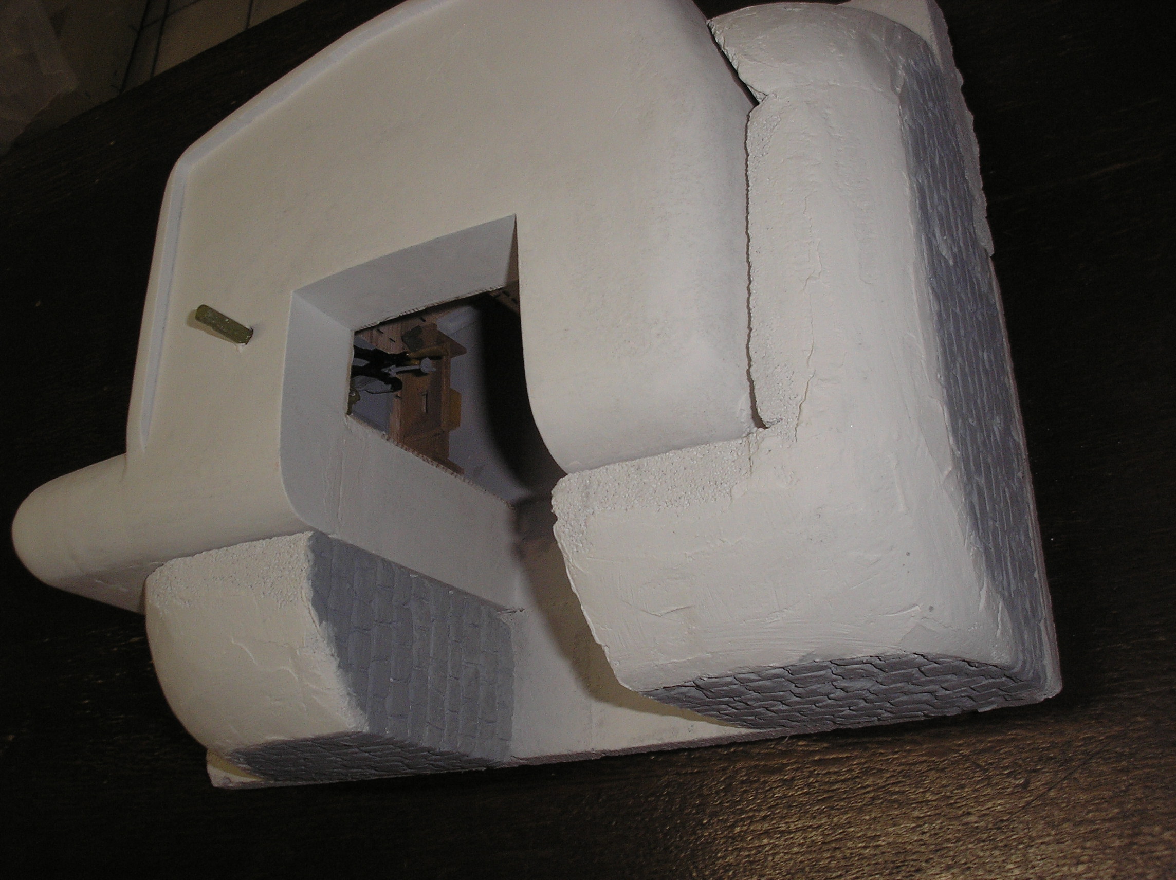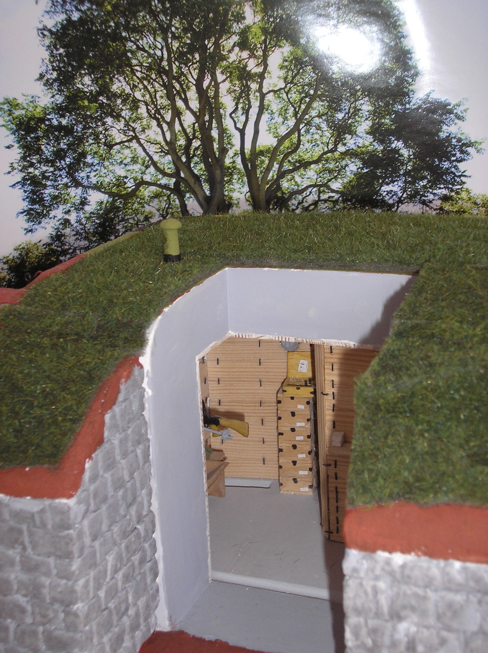Tak tady je fotečka ještě před instalací lapače splodin. Model je v měřítku 1:20. Velkým pomocníkem byla Velká kniha o malých bunkrech. Počítám ještě alespoň s naznačením záhozu a barevnou fasádou.