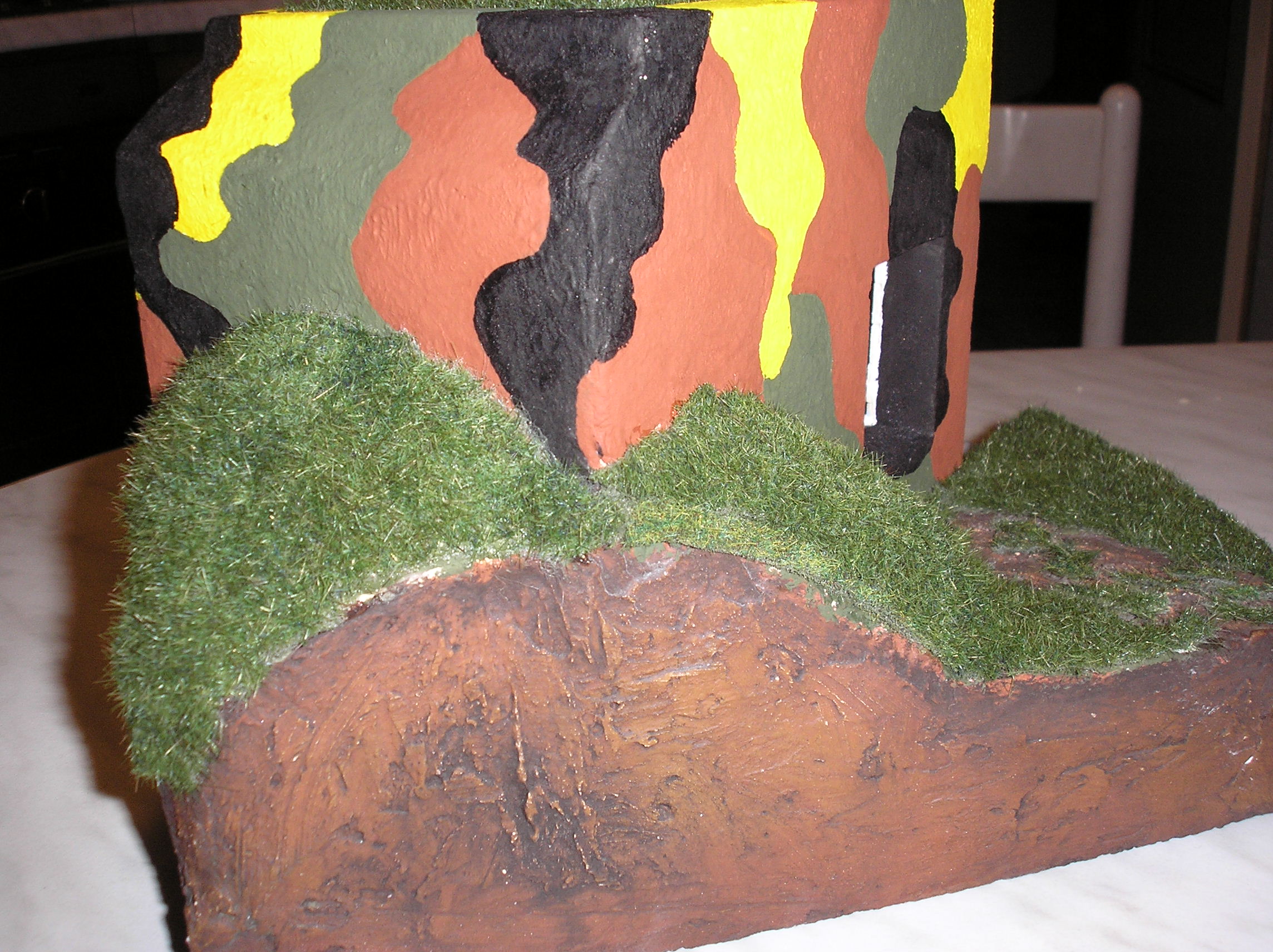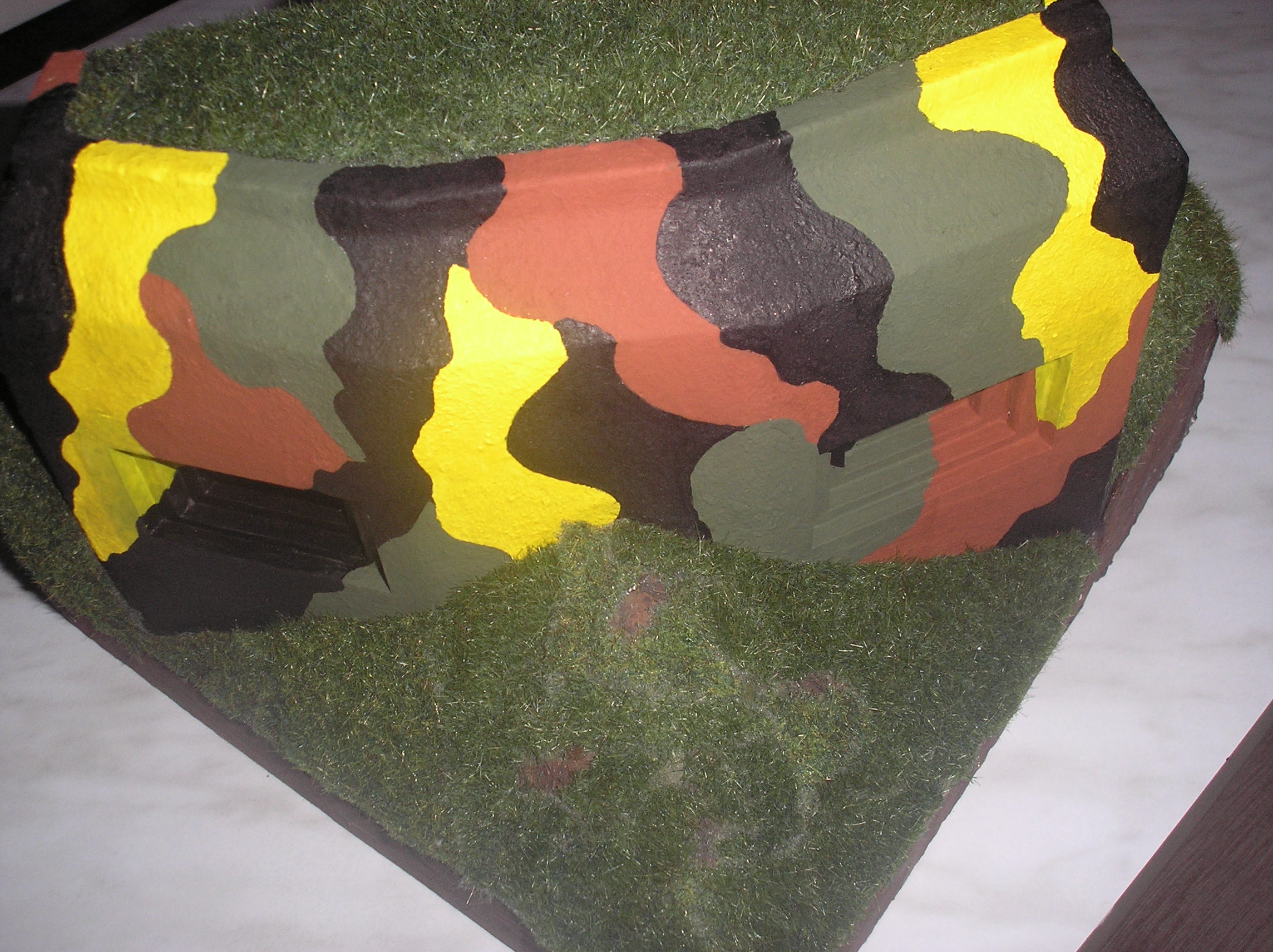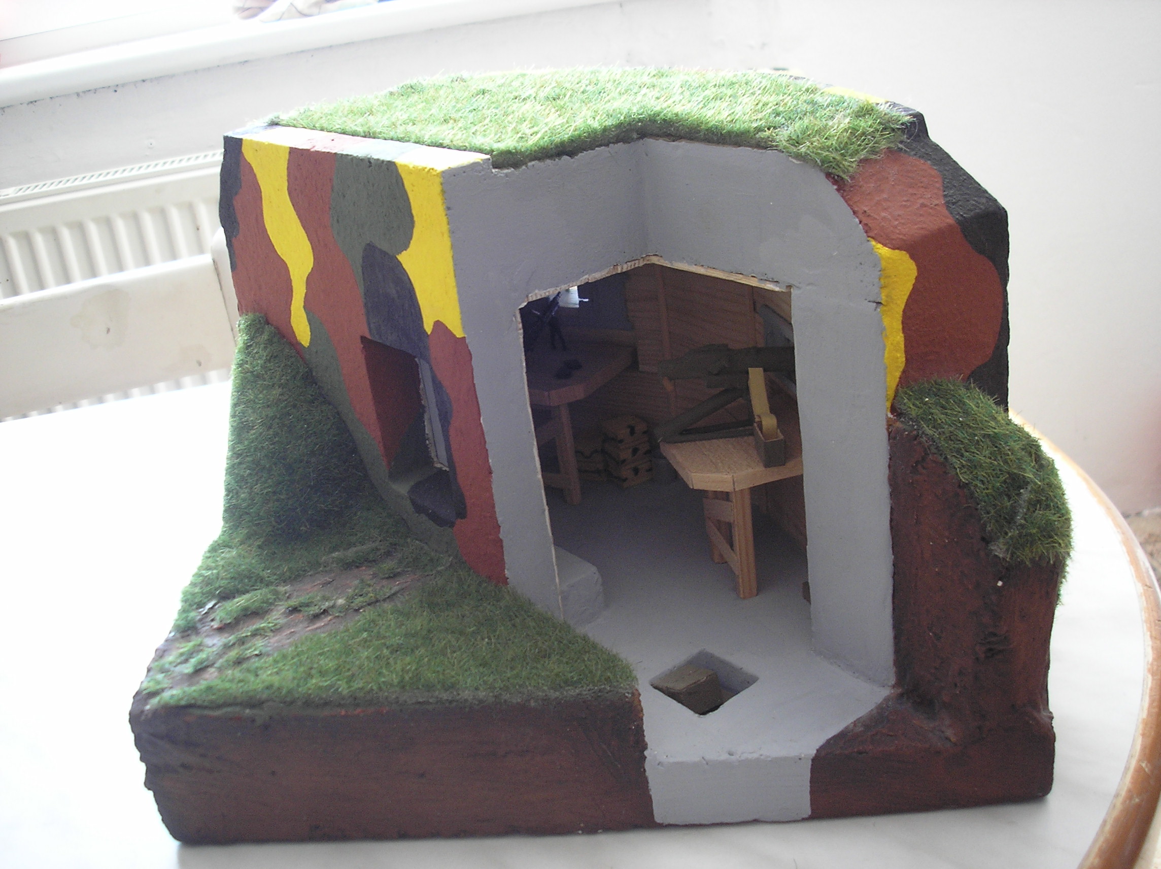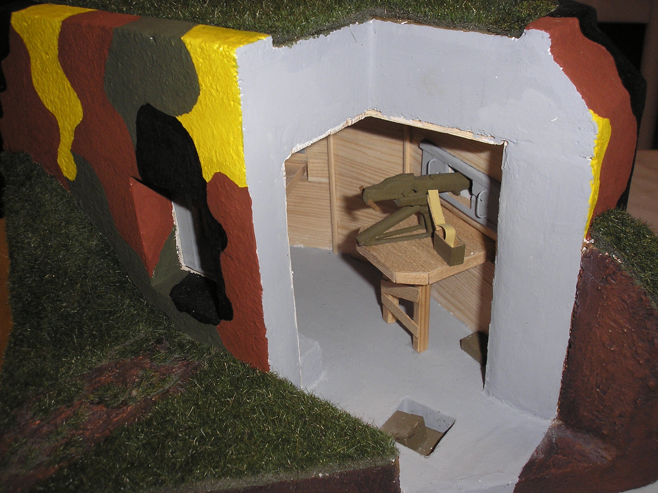 Tak je hotovo. Model nemá hlásat nějakou absolutní pravdu o lehkém opevnění, je to jen pomůcka, na které budou ukázány žákům prvního stupně ZŠ některé principy našeho opevnění. Třeba se mi povede děcka trochu "nakazit". Petr