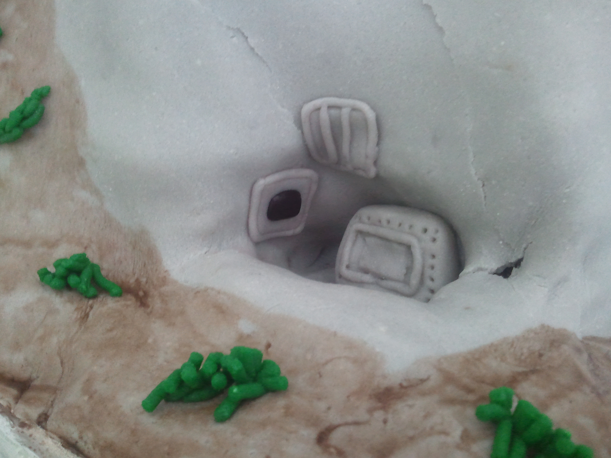 Materiál - marcipán, pařížský krém a bábovkové těsto, nebo jak se to jmenuje.