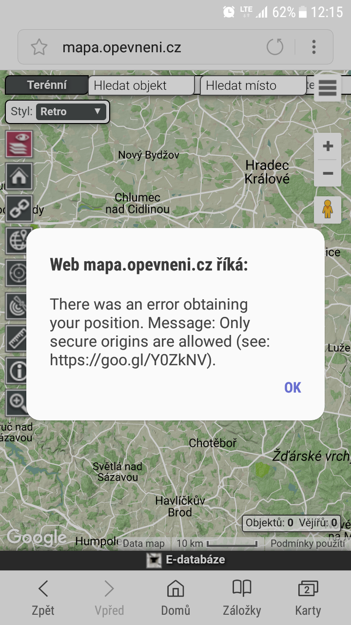 Měl bych otázečku k mapě. Nefunguje mi tlačítko "sledovat geolokaci uživatele" .Předpokládám, že problém bude někde v nastavení zabezpečení telefonu, ale nemůžu najít kde