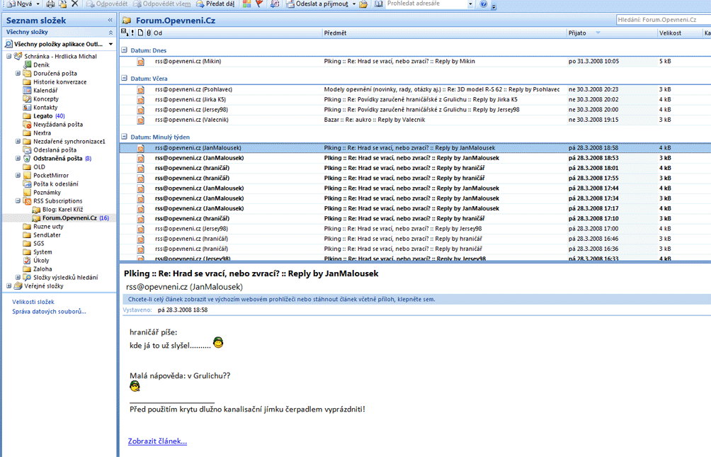 - Otestováno v IE7 a Outlook 2007, pokud používáte RSS čtečku jinou, dejte pozor na nastavení formátu