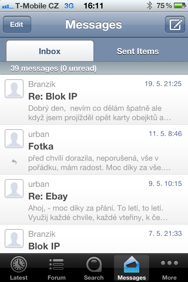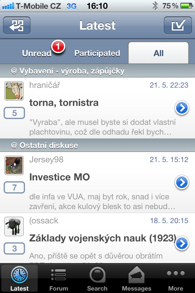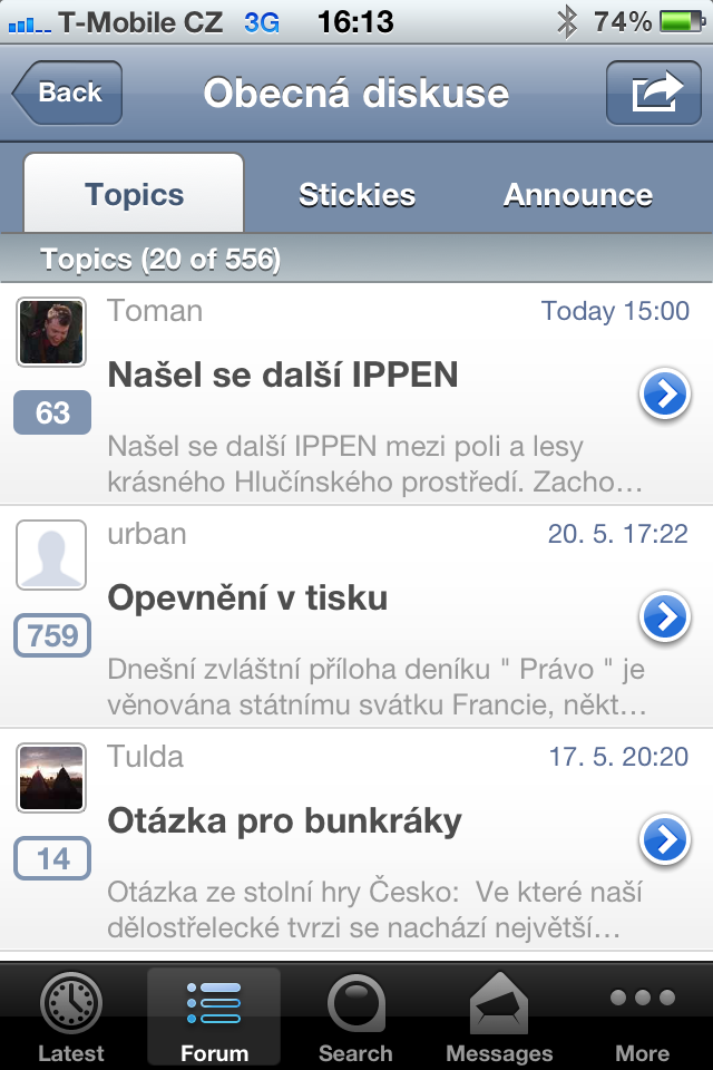 A pro představu ještě pár obrázků jak forum.opevneni.cz vypadá v Tapatalku na Ajfounu ...