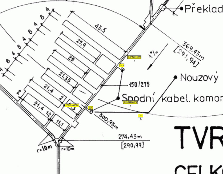 sipka píše:Nedalo mi to a znovu jsem porovnal souřadnice z DBTO, výkres Z. Komance a Michalovu soustavu vzdáleností. Odtud mě vyšlo že (číslováno podle DB) 3424 je první kabelová komora u M 1 od začátku podzemí (s pažnicí), 3423 je druhá komora u M 1 od začátku podzemí (s pažnicí) a 3422 je samostatná komora pro komory 1 a 2 orientovaná na východ. 3324 je první kabelová komora u kasáren od začátku podzemí (s pažnicí), 3323 je druhá kabelová komora u kasáren od začátku podzemí (s pažnicí) a 3322 samostatná komora pro komory 4 a 5 orientovaná na západ. Vše v toleranci, kterou můžeme od vstupních dat a použité projekce očekávat, t.j. s odchylkou do 10 m, s jedinou vyjímkou. Falíruje mi tam S 39–3 = 287 a já bych to viděl tak o 30 m méně. Můžeš to Michale zkontrolovat?