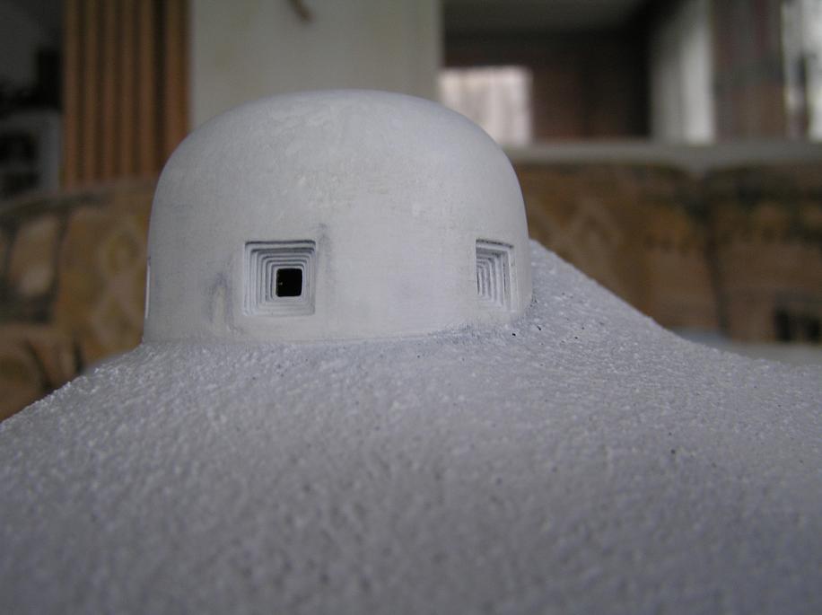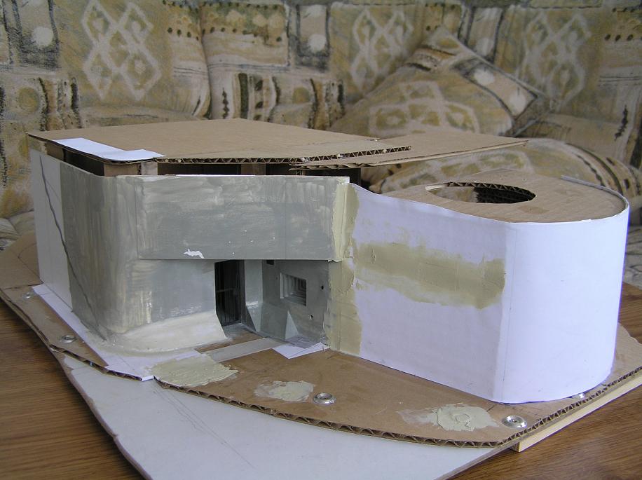 Jak je vidět z fotek bylo to formou pokusů a omylů - koneckonců můj první model postavený vlastně z ničeho. Pro začátek je třeba co nejvíce dat - měřením na objektu samotném jsem strávil hodně času. Když člověk začne modelovat, zjistí kolik toto v knihách nenajde (rozměry střílen, ventilačních mříží, rozměry vchodu apod.).