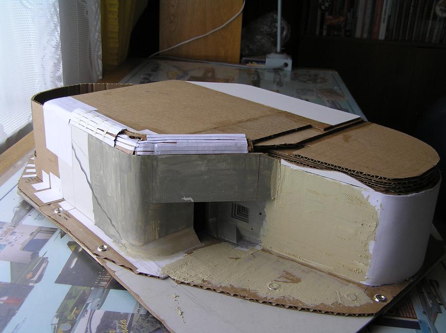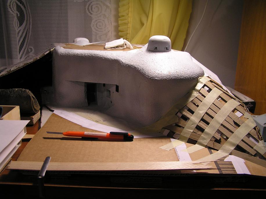 Navíc se mi líbí, že jsou tu fotky ze stavby, takže vidím, jak se to dělá (sám jsem přemýšlel nad sádrou a teď koukám, že karton je dobrým stavebním materiálem). Možná by nebylo na škodu ještě víc poodhalit taje "kuchyně" a popsat nějaké fígle a vychytávky, nebo aspoň čemu se vyhnout při stavbě takového modelu. Prostě takovou kuchařku.