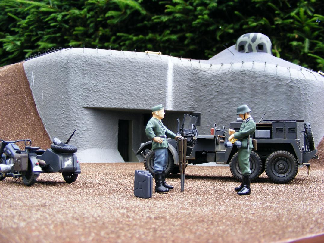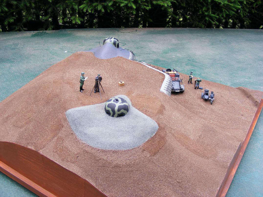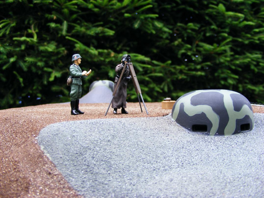 Přibude ještě voják opírající se nohou o ZP a sledující dalekohledem linii směrem k Anenskému vrchu. Flákač ležící u paty záhozu v týlu obj. nabízející cigaretu kamarádovi a zvědavec klečící a zkoumající střílnu ZN.