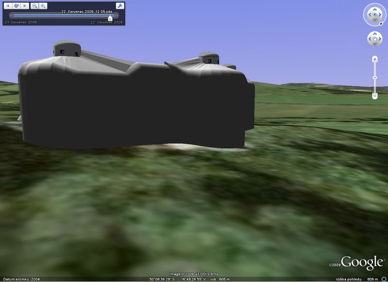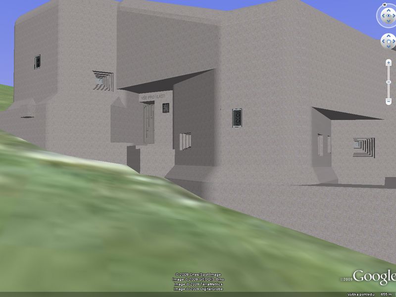 Jinak probémy s nemožností zobrazení příkopů a vůbec částí skrytých pod terénem jsem vyřešil snížením jejich hloubky a postavením objektu na mírný kopeček. Ne vždy to je ale ideální..