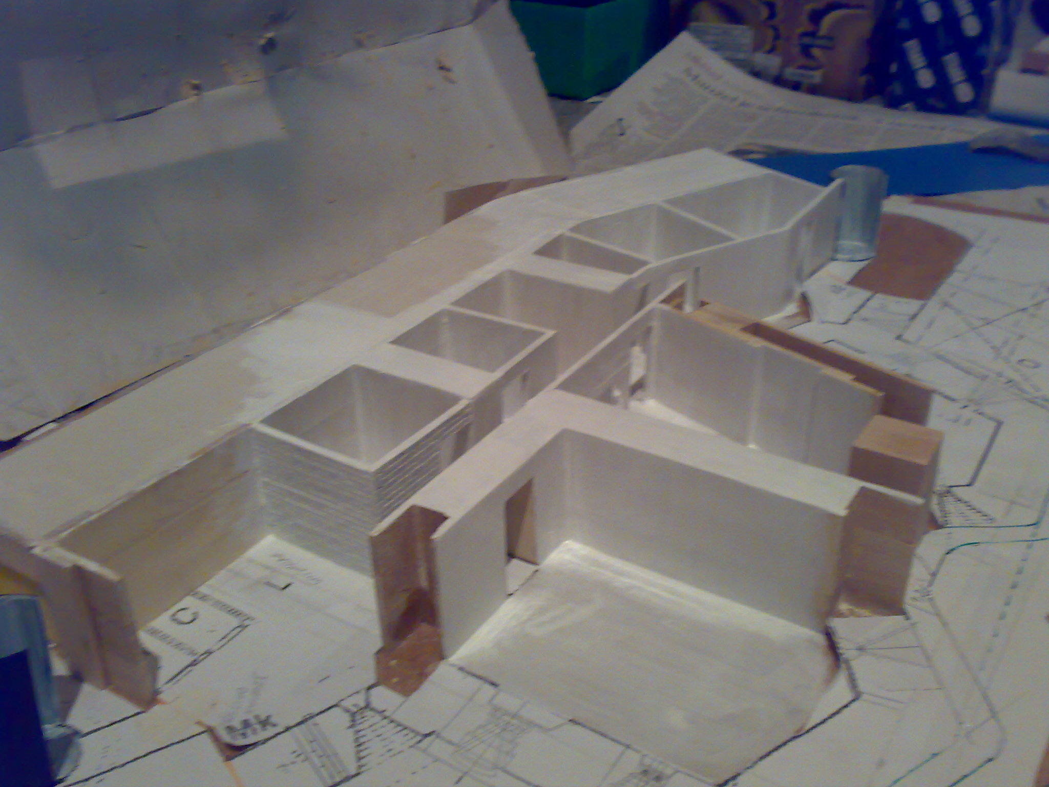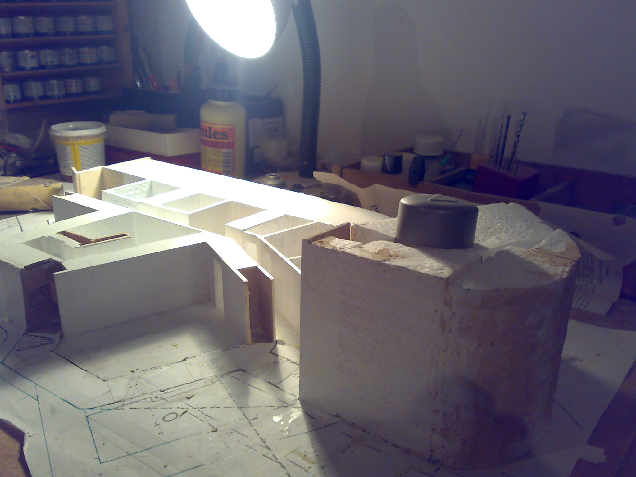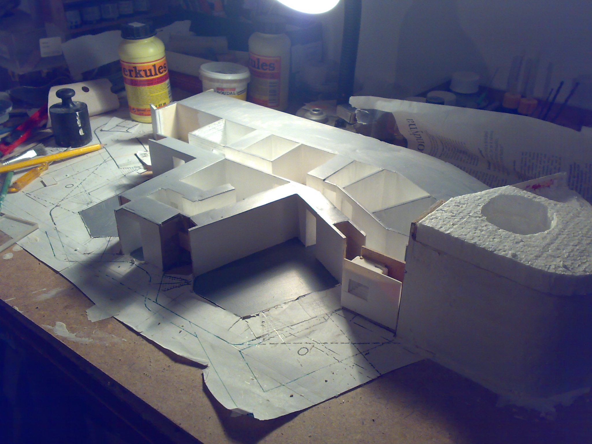 zdravím, takže se opět hlásím ze stavby pokrok následující: hotová vchodová střílna, začal jsem pracovat na pravém ochraném křídle, zhotovování střílen zbraně N, natření celého interiéru zakladovkou. Všechno viz. fota: