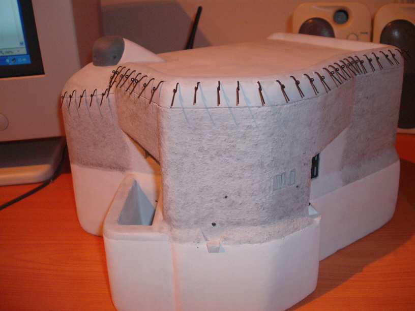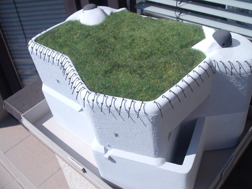 Tak je tu další výtvor. Je to takové 3D . Jako podklad pro stavbu modelu posloužily obrázky z knihy Opevnění na Náchodsku a měl by to být objekt N-S 93b. Po stavbě jsem od kluků z T-S 19 a T-S 20 získal přesnou výkresovou dokumentaci, takže skutečnost je trochu jiná. Na stavbu byl použit Itong, tmel, sádra, dráty, hroty s propisek, trysky ze zapalovačů a papír. Na fasádu byla použita hrubá mouka smíchná s lepidlem.