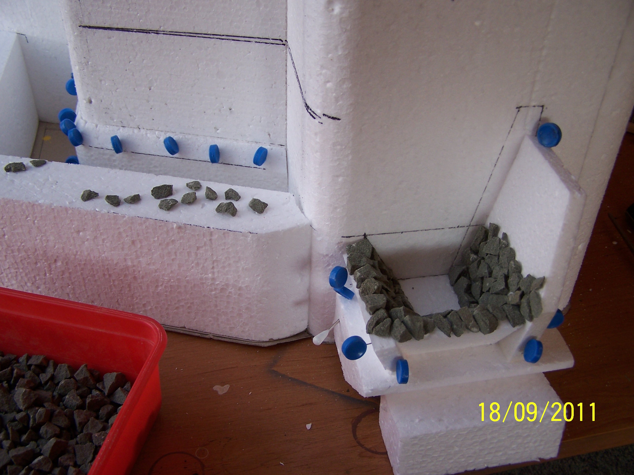 Moc pěkná práce, s pěnovým polystyrenem a sádrovým tmelem. Až bude model hotový, bylo by téměř škoda nevystavit jej v prostorách, které odpovídají jeho měřítku. Model by měl být umístěný ve srubu MO-S5 ? Možná by stálo za úvahu udělat z něj poutač v některém muzeu nebo veřejném prostoru. Dávat jej do srubu je až škoda.