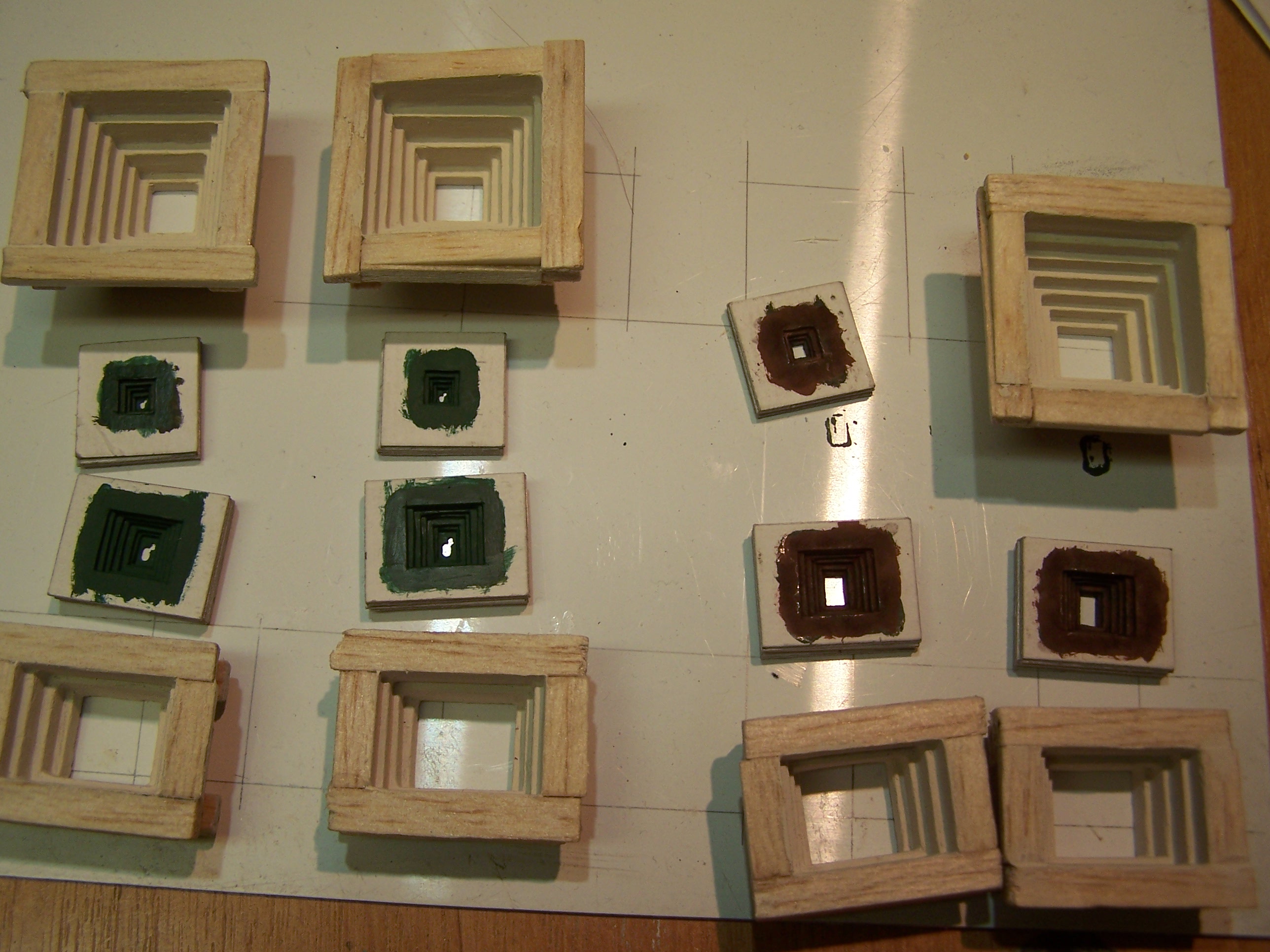 Posílám opět pár fotek ze stavby MO-5.Barvil jsem srub silně naředěnými pigmenty firmy CMK.Je ale velmi důležité důsledně vytmelit a natřít základní barvou,(na tu požívám Latex) všechna místa na modelu, kde se pigmenty bude natírat,jinak ředidlo polystyrén "vyžere".Srub jsen natíral pigmenty různých barev(saze,světlá rez a tmavá zem) aby jsem dosáhl požadovaného výsledku natíral jsem model pigmenty 12x.Chce to trpělivost a čas.Pokud by se namíchaly pigmenty na hustší roztok,výsledek "opršení" by nebyl takový,a Srub by byl moc tmavý.