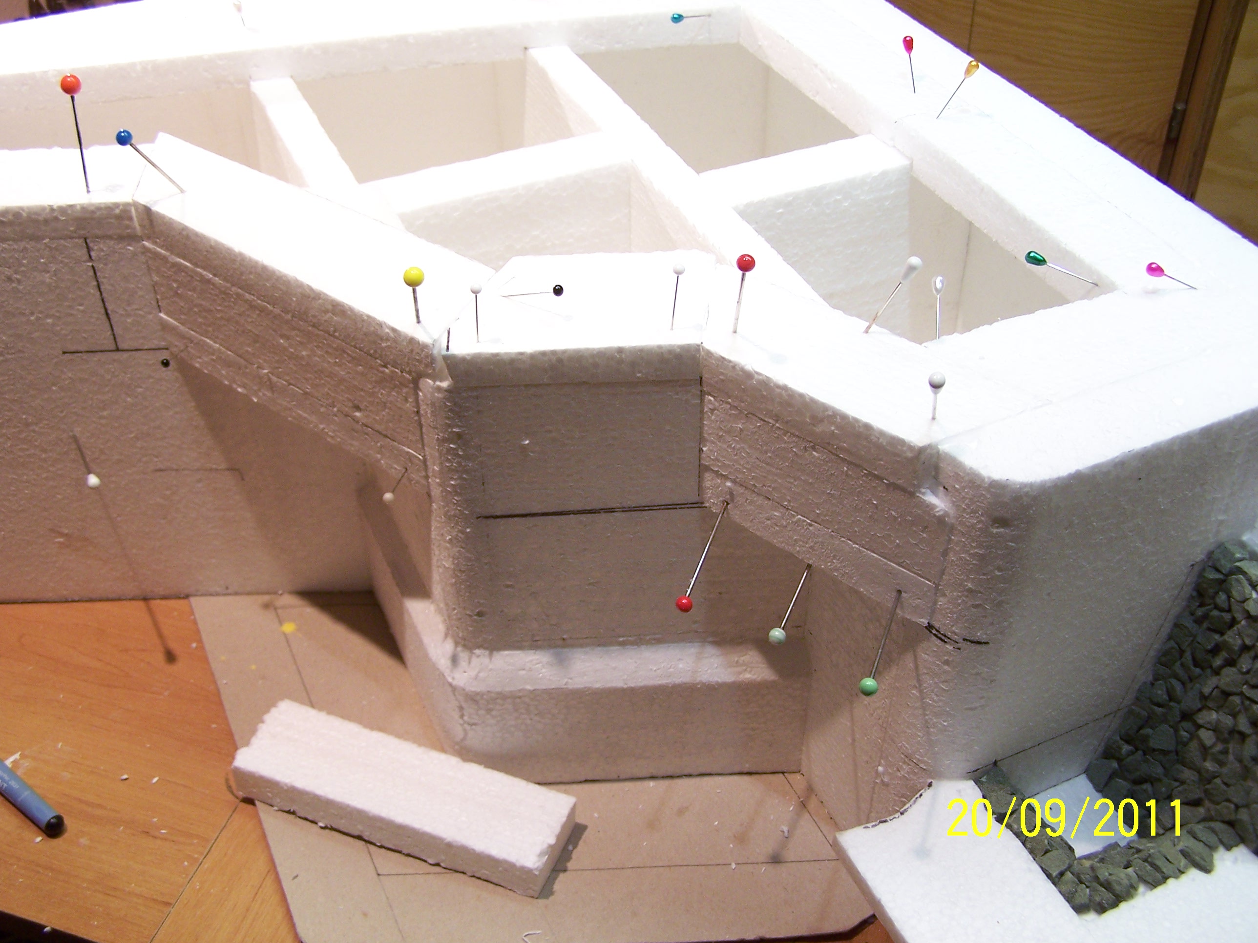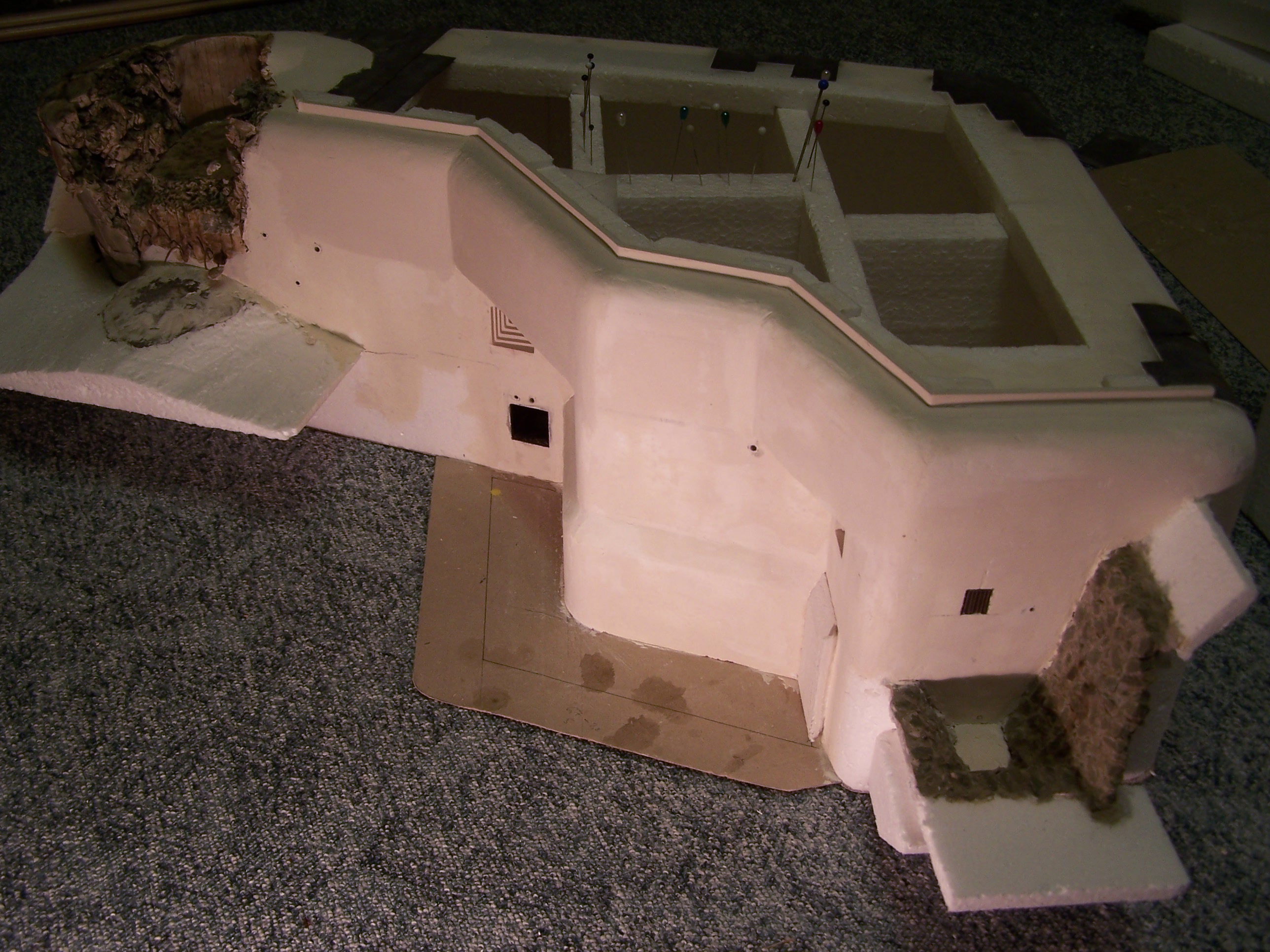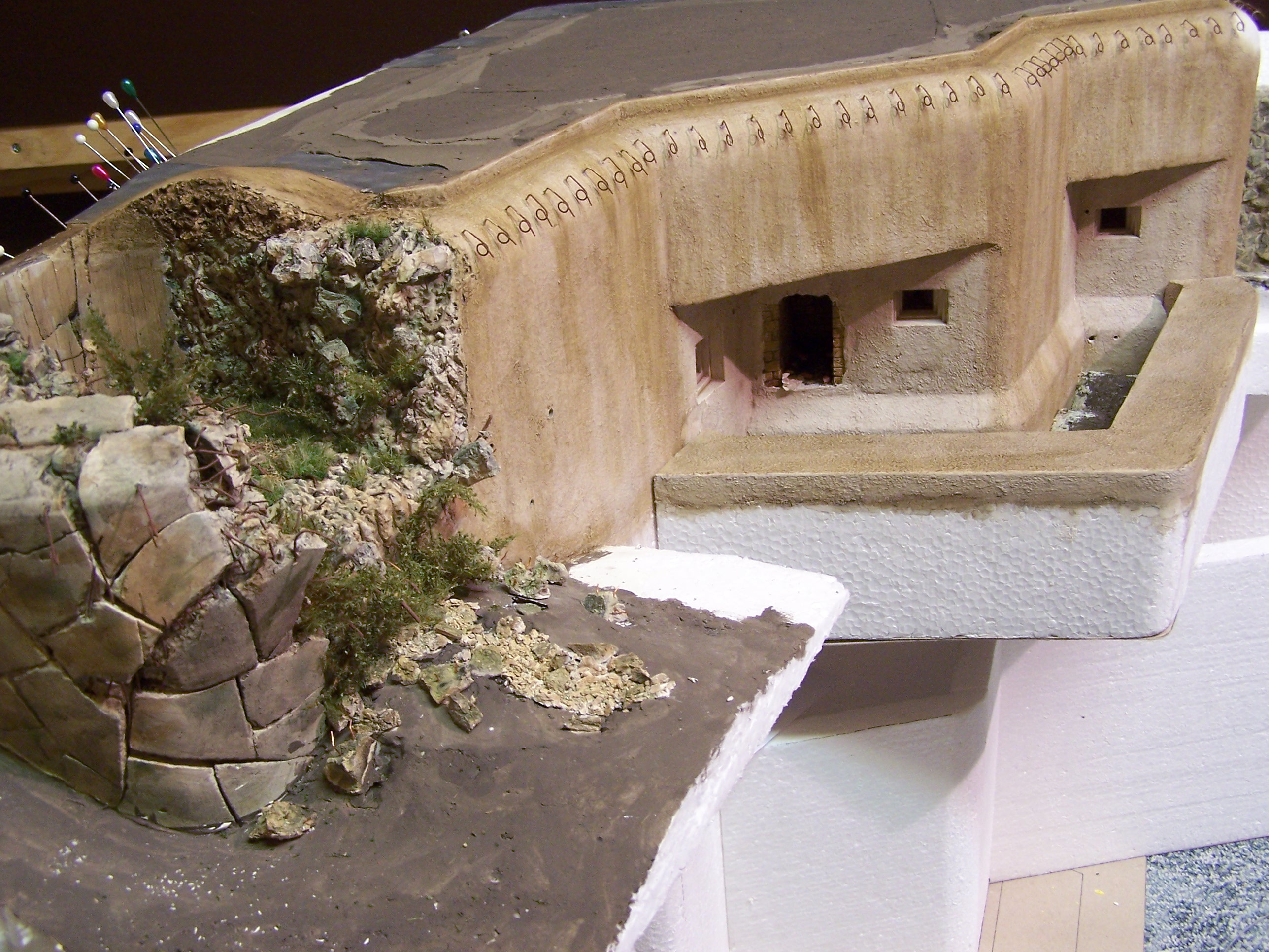 Moc pěkná práce, s pěnovým polystyrenem a sádrovým tmelem. Až bude model hotový, bylo by téměř škoda nevystavit jej v prostorách, které odpovídají jeho měřítku. Model by měl být umístěný ve srubu MO-S5 ? Možná by stálo za úvahu udělat z něj poutač v některém muzeu nebo veřejném prostoru. Dávat jej do srubu je až škoda.