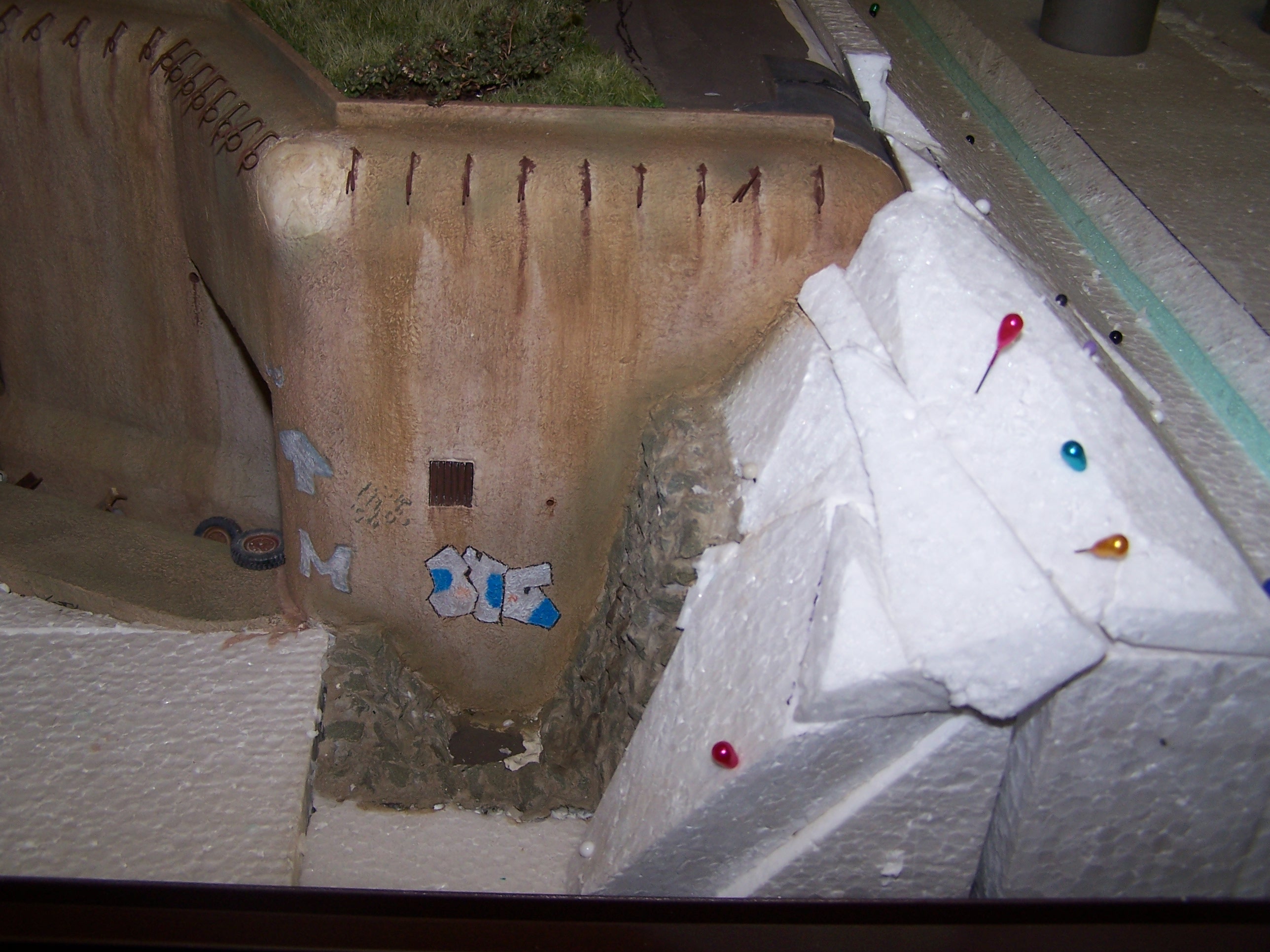 Mám ale dotaz na vnější část. Předpokládáte, že takto již zůstane, nebo budete spáry v popraskané zdi ještě upravovat? Nyní na mne působí spíše jako pískovcová skála, nikoliv jako popraskaný železobeton. Trhliny v "odkloněných" částech zdi jsou po trhání většinou tenké, neb vše stále drží pohromadě armatura. Zkrátka nedochází tak k tvorbě takto velkých mezer mezi částmi betonu, kterým zůstávají velmi ostré hrany, když už se oddělí. Viz. např. foto 3140 na MO-S 20.