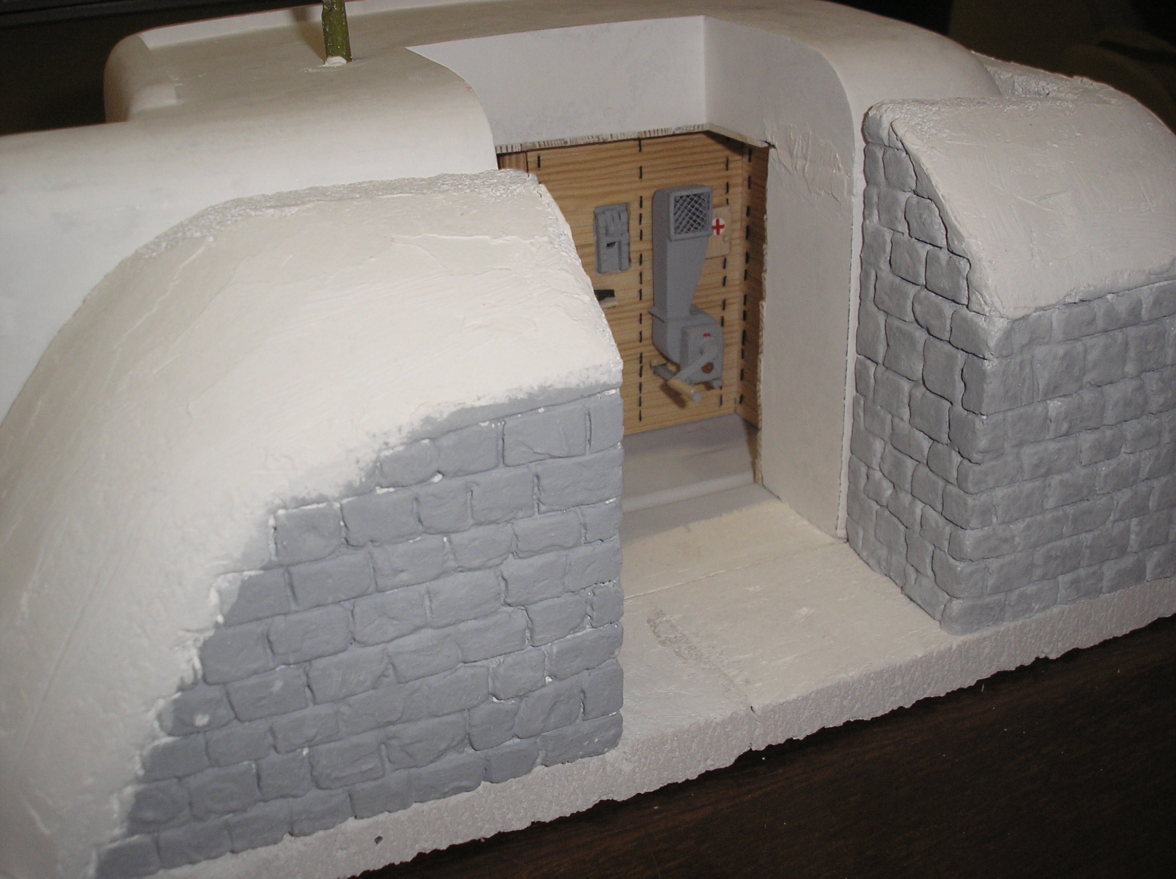 Tak tady je fotečka ještě před instalací lapače splodin. Model je v měřítku 1:20. Velkým pomocníkem byla Velká kniha o malých bunkrech. Počítám ještě alespoň s naznačením záhozu a barevnou fasádou.