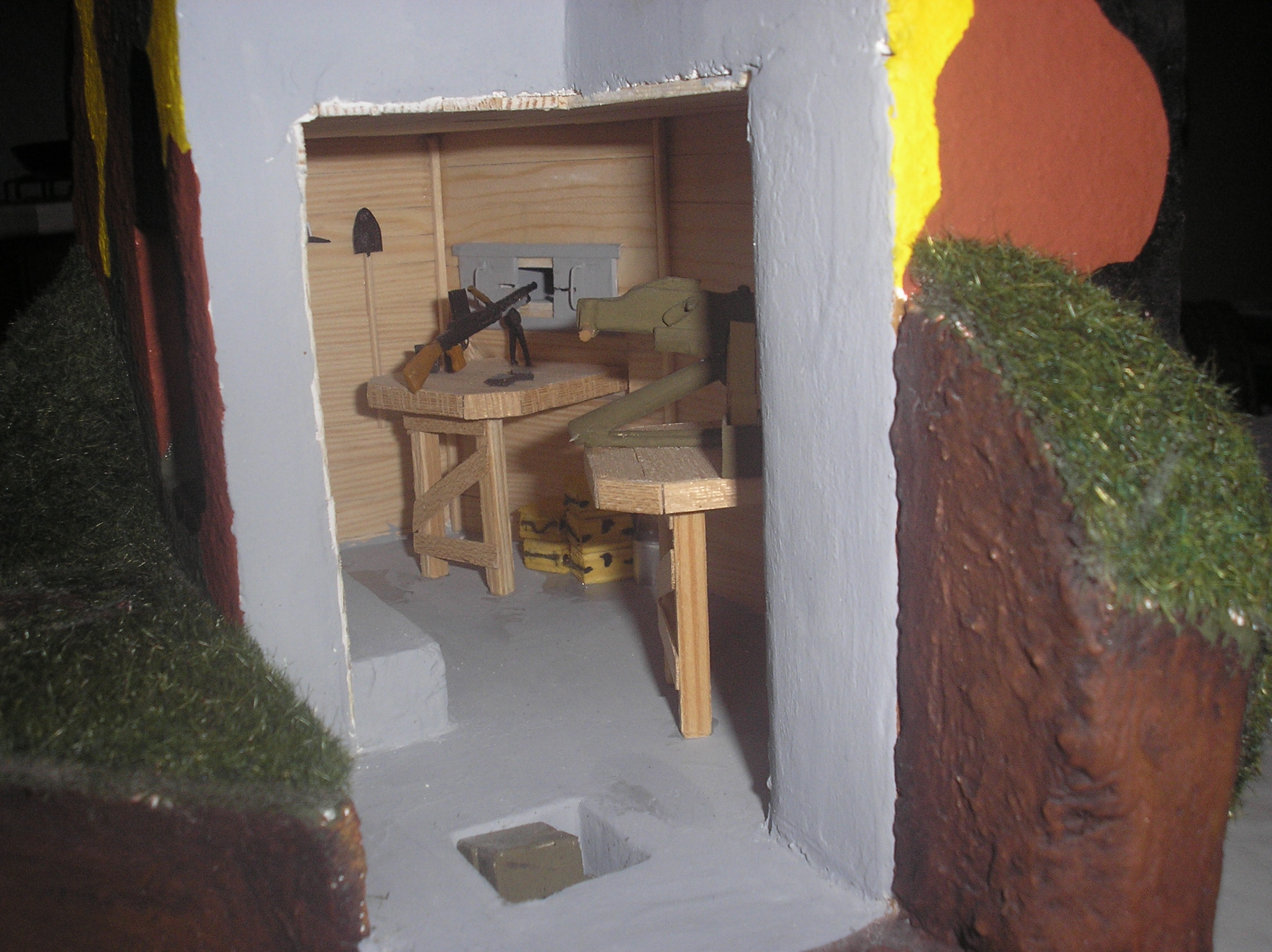Tak je hotovo. Model nemá hlásat nějakou absolutní pravdu o lehkém opevnění, je to jen pomůcka, na které budou ukázány žákům prvního stupně ZŠ některé principy našeho opevnění. Třeba se mi povede děcka trochu "nakazit". Petr