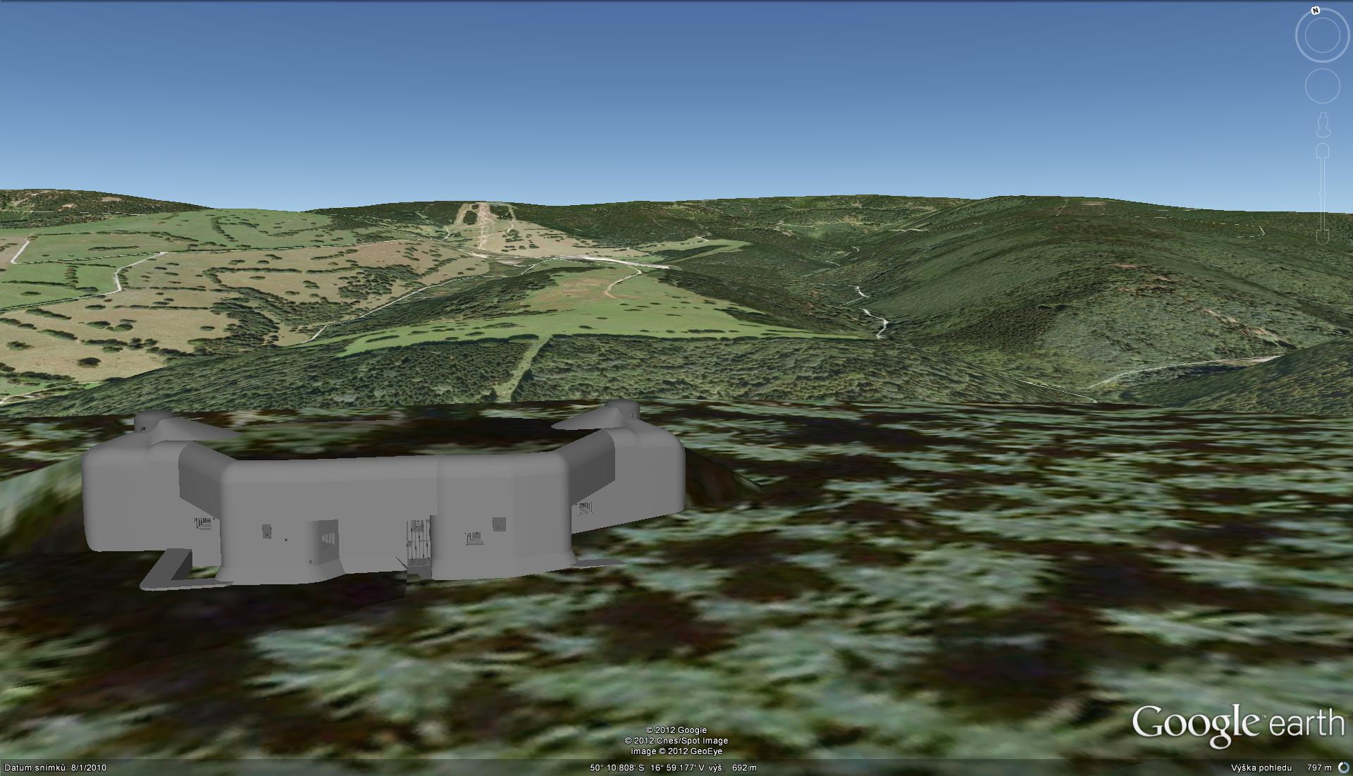 Johnie Hopper píše:Tak se mi podařilo protlačit do 3D vrstvy Google Earth fotorealistickou zjednodušenou verzi jednoho arabského objektu na Rokytnicku...hledejte na Google Earth :-).