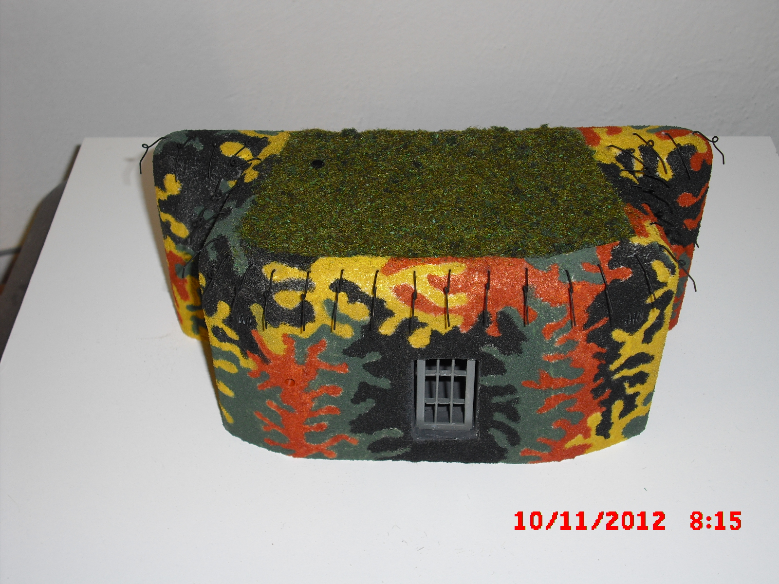 Začal jsem s modelařením čs. opevnění. Hodně zde na fóru čtu vaše příspěvky a kochám se dokonalými modely. Zvláštní obdiv patří těm co tvoří modely z nestavebnic. Uveřejňuji zde fota mého prvního modelu. Je to LO vz.1937, typ A-160 N. Model je kopií objektu č. 16, stavebního úseku C-10, I. sboru. Objekt je situován v Roudnici nad Labem a je zrekonstruován jako muzeum. Model je vyhotoven z polystyrenu. Povrch jsem vytvořil z lepidla na obklady, omítka je z jemného křemičitého písku. Střílny jsou lepeny z polystyrenových L profilů, stejně tak mřížové dveře. Terénní úpravy jsou vyhotoveny z PUR pěny a tmeleno lepidlem na obklady. Povrch zasypán travním posypem pro železniční modeláře. Podotýkám, že je to můj první model, tak buďte při kritice shovívaví. Díky.