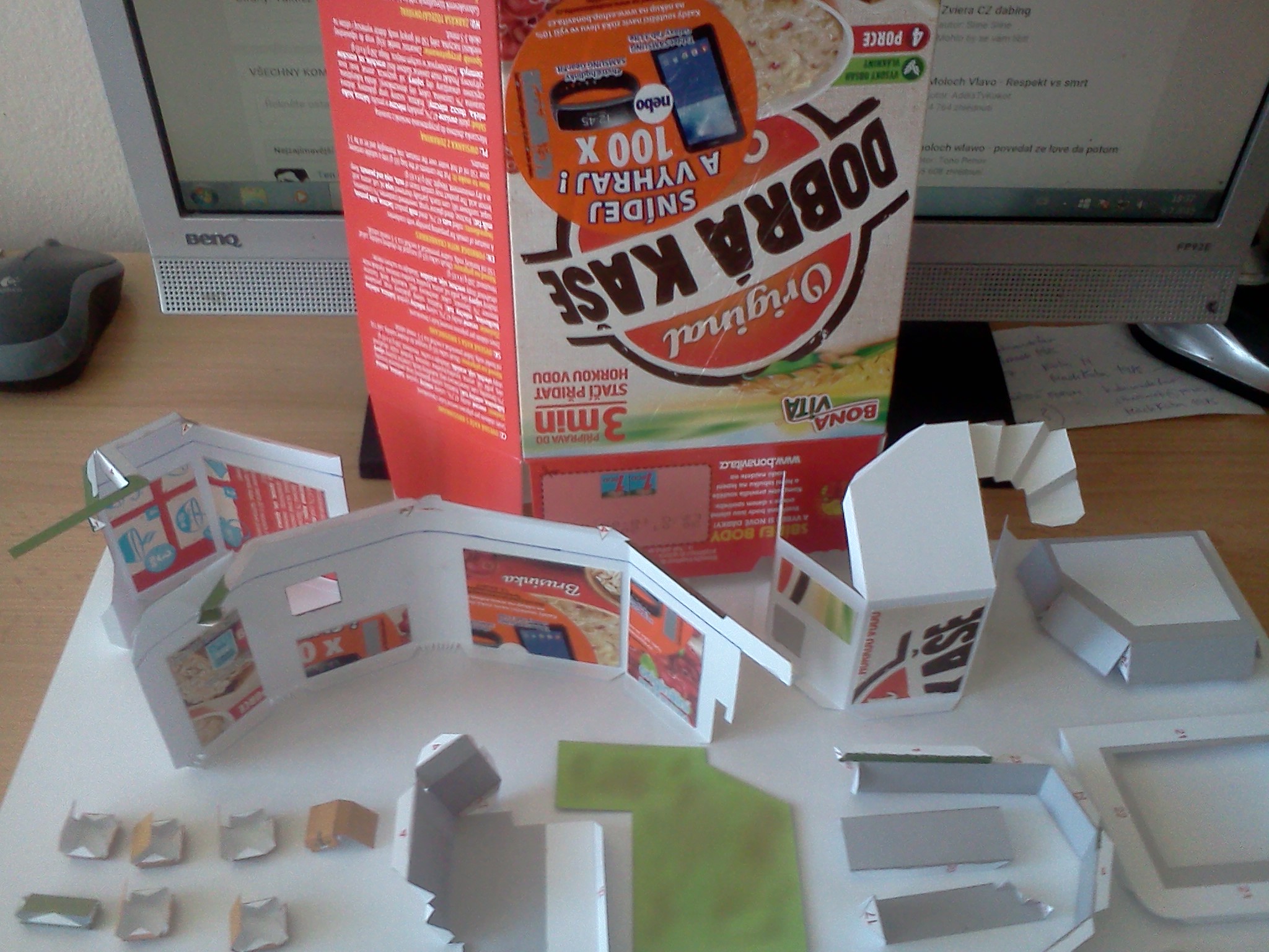 Během víkendu opět malý posun na modelu LO 37 C 1/35. Nejprve jsem celý model natřel bezbarvým syntetickým lakem pro zpevnění a zmenšení savosti papíru. Poté následovala druhá vrstva laku kterou jsem hned po natření, dokud byl lak mokrý posypal jemným přesátým pískem a nechal pořádně proschnout a poté oklepal od nepřilepeného písku. Dále následoval základní nátěr šedivou barvou a osazení do připraveného terénu vyřezaného z extrudovaného polystyrenu.
