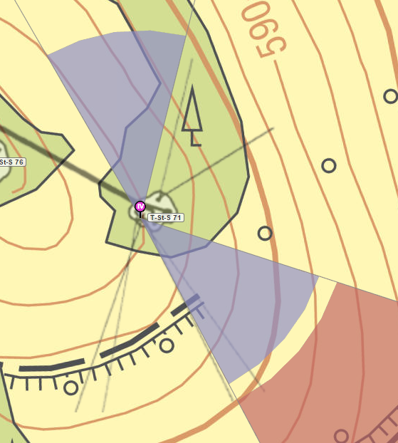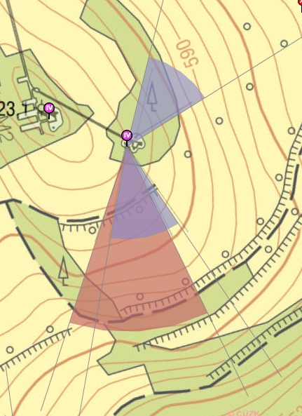 Všiml jsem si, že chybné vějíře budou patrně tam, kde ve stejném směru mají zbraně rozdílné azimuty. Tedy i objektů u tvrze s německým jménem.