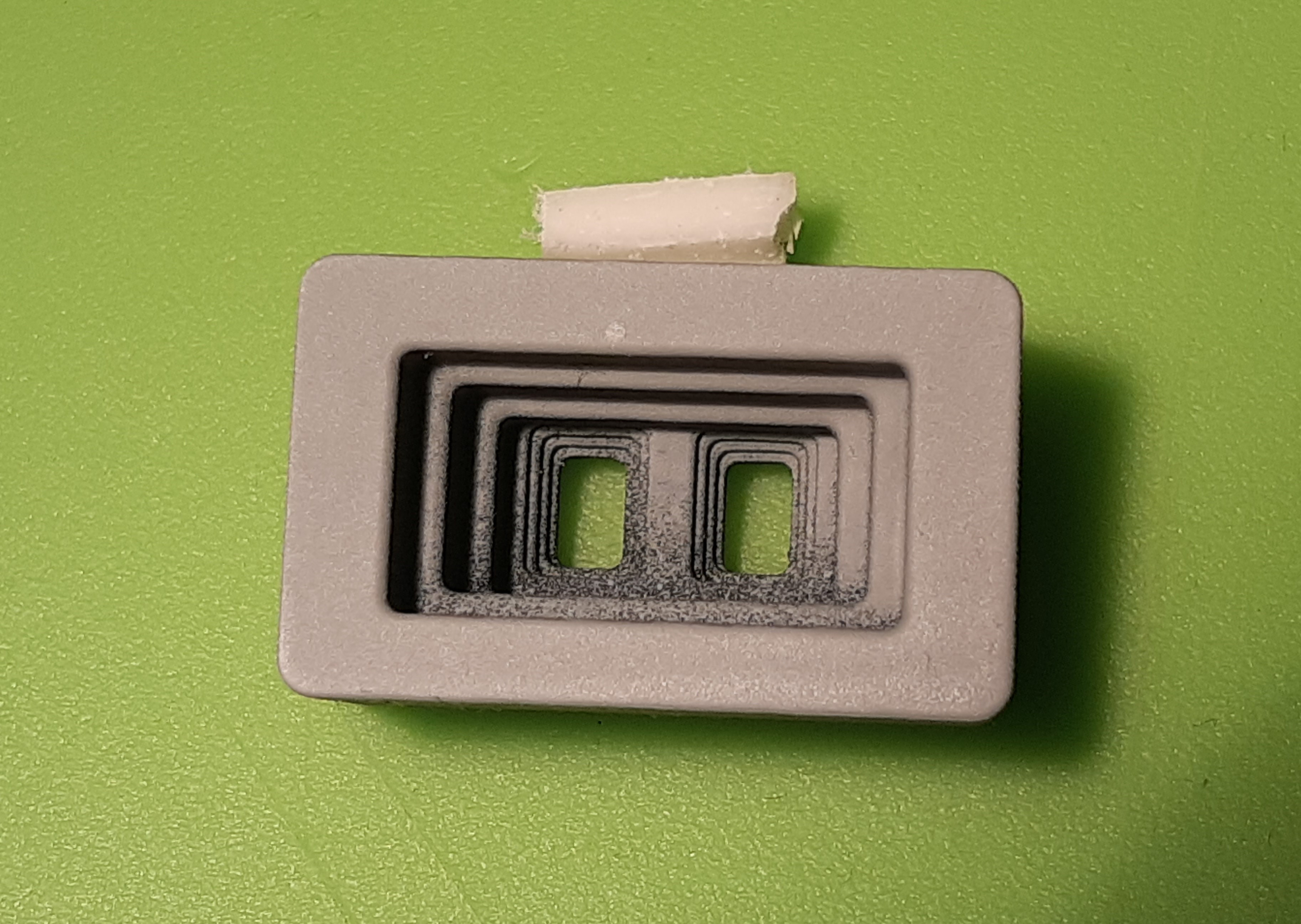 Po osazení střílny M jsem měl neodbytný pocit, že něco nepovedlo. Při zalití osazené střílny lepidlem z tavné pistole se bohužel prohnula přední část rámu střílny vyrobená FDM tiskem.