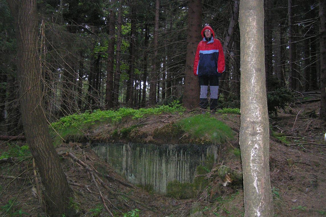 Pokud hovoříte o první serpentině lesní silnice nad vchodem K – 22a, tak v tomto prostoru se v zalesněné stráni nachází jistý podzemní čtvercový železobetonový objekt, který byl součástí komplexu tří nadzemních budov. Ty zde vyrostly v padesátých letech minulého století. Bohužel tato stavbička nemá s výstavbou kabelové sítě nic společného.