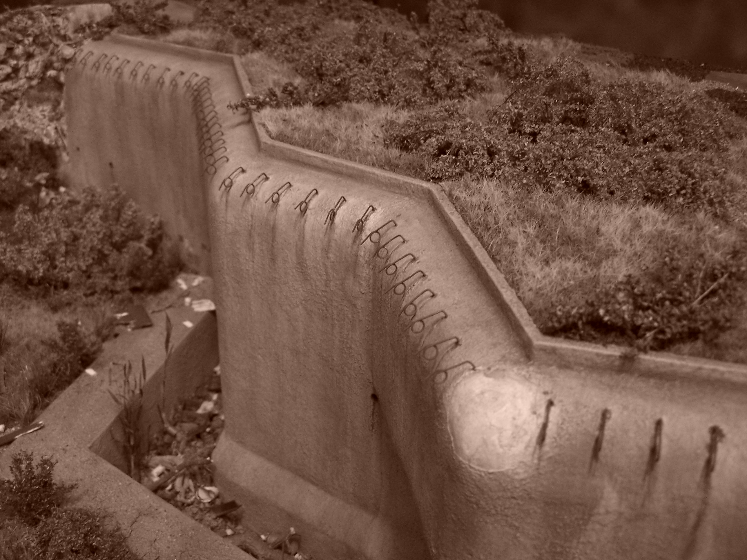 Mám ale dotaz na vnější část. Předpokládáte, že takto již zůstane, nebo budete spáry v popraskané zdi ještě upravovat? Nyní na mne působí spíše jako pískovcová skála, nikoliv jako popraskaný železobeton. Trhliny v "odkloněných" částech zdi jsou po trhání většinou tenké, neb vše stále drží pohromadě armatura. Zkrátka nedochází tak k tvorbě takto velkých mezer mezi částmi betonu, kterým zůstávají velmi ostré hrany, když už se oddělí. Viz. např. foto 3140 na MO-S 20.