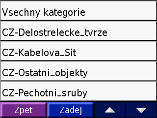 Jsme v Uzivatelskych bodech a muzeme si vybrat kategorii Bodu zajmu (POI), kterou chceme prohledavat ... nas budou ted samozrejme zajimat predevsim 'nase' databaze, tedy CZ-Opevneni a CZ-Technicke_pamatky ...
